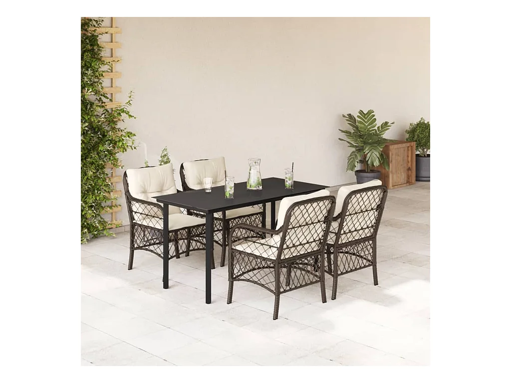 Ensemble à manger de jardin 5 pcs et coussins marron poly rotin