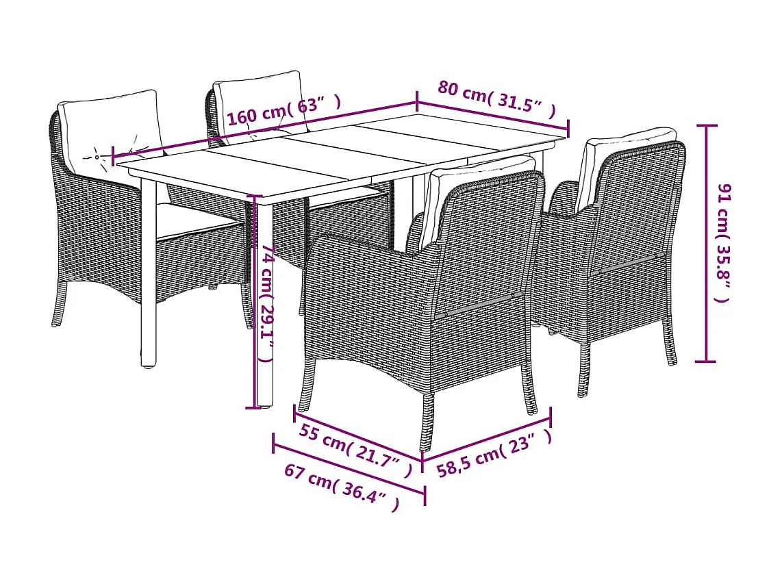 Ensemble à manger de jardin 5 pcs et coussins marron poly rotin