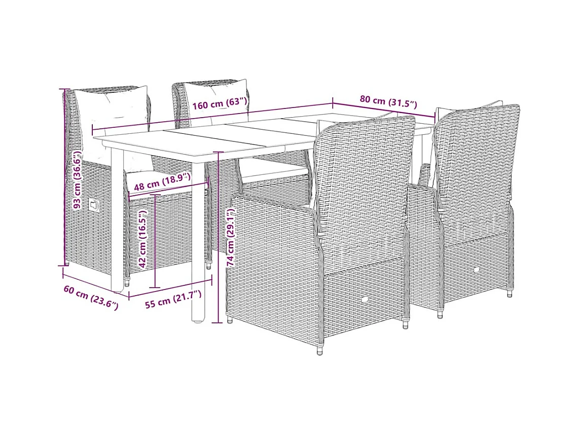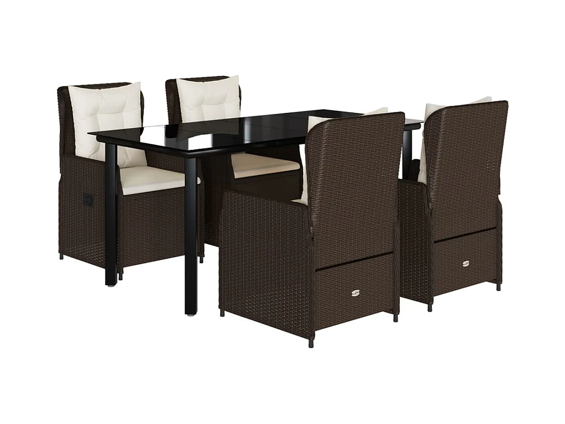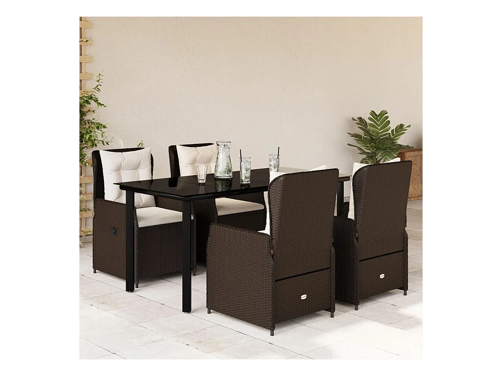 Ensemble à manger de jardin 5 pcs et coussins marron poly rotin