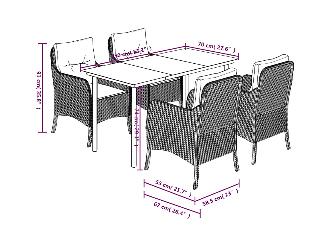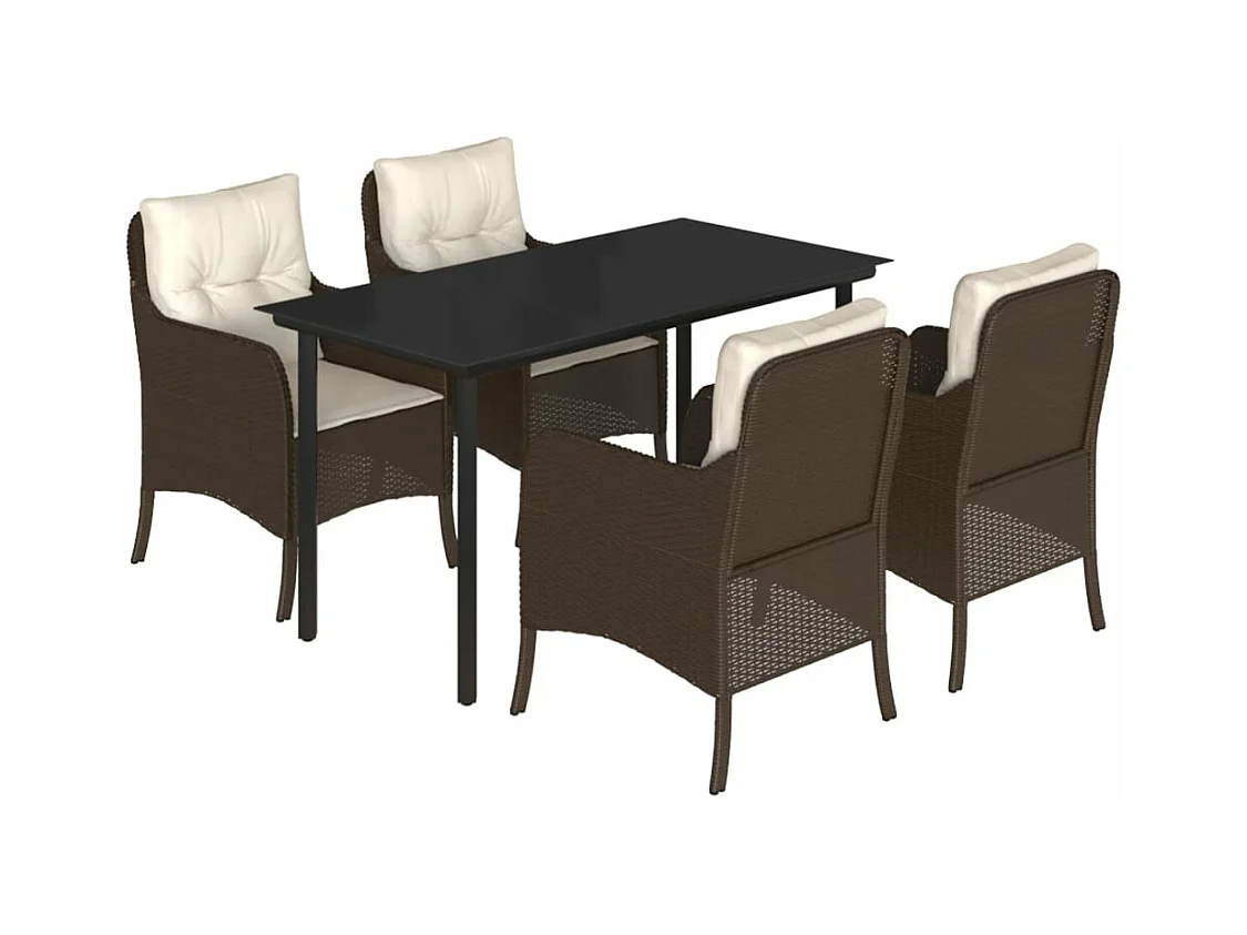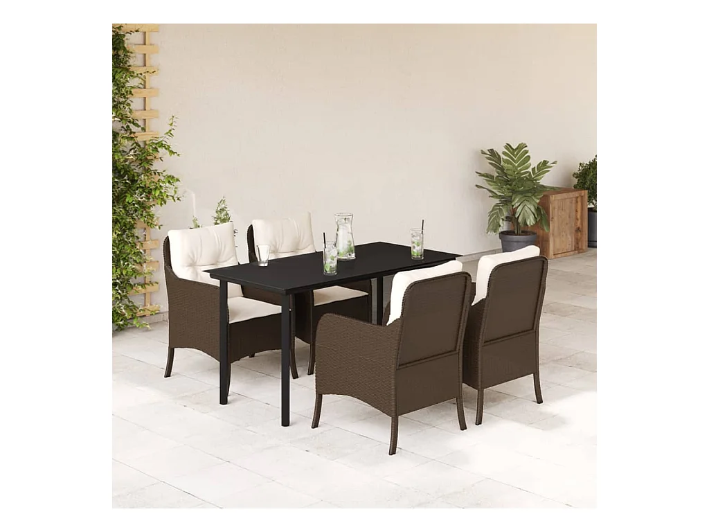 Ensemble à manger de jardin 5 pcs et coussins marron poly rotin