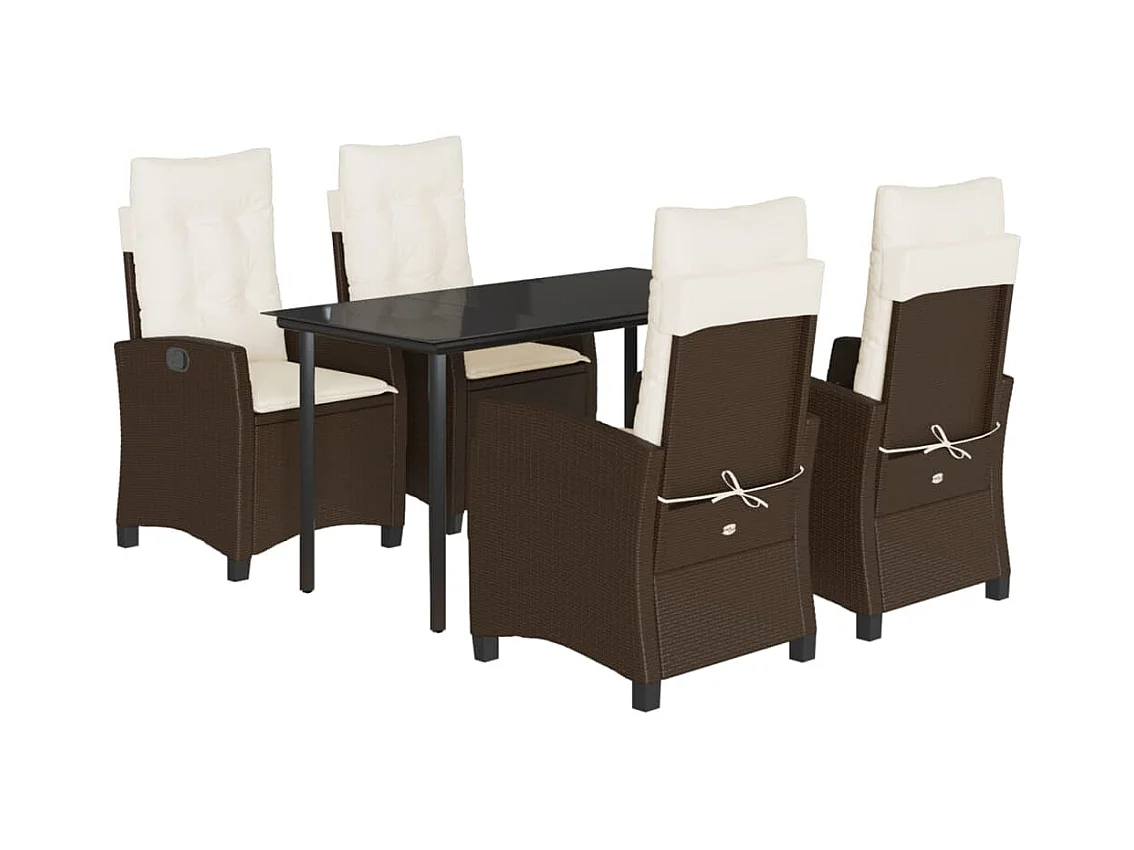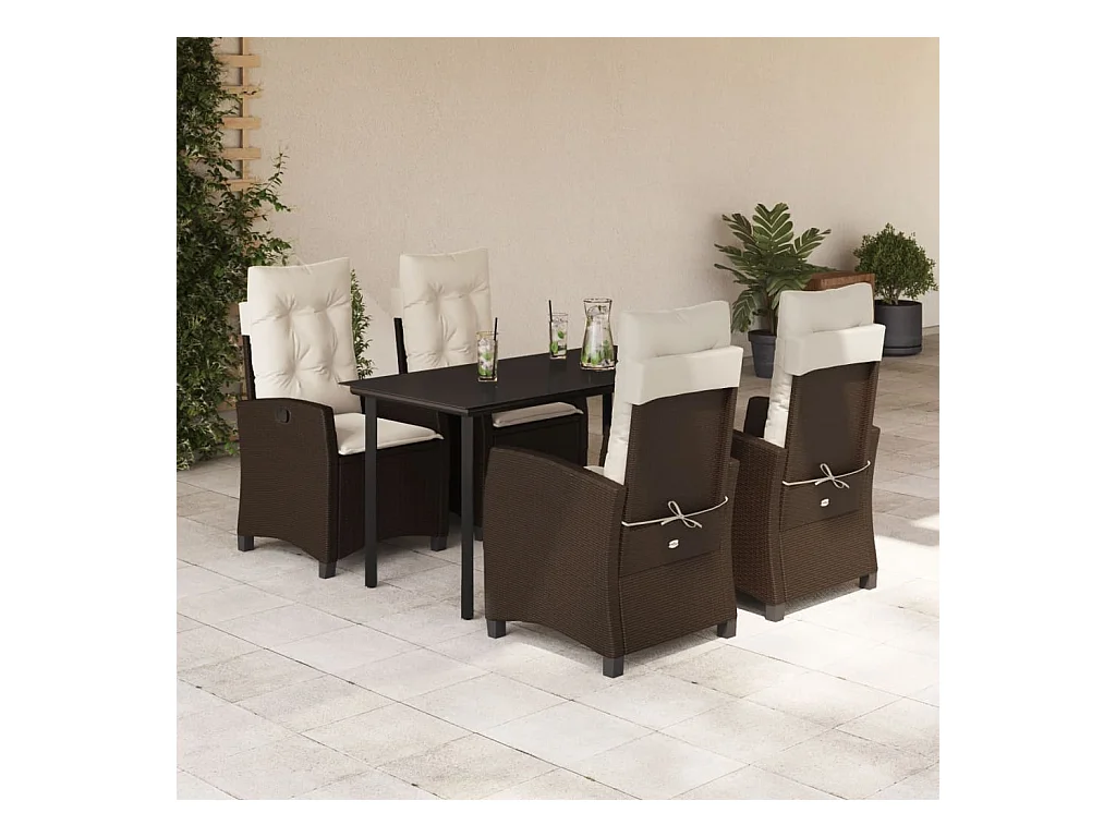 Ensemble à manger de jardin 5 pcs et coussins marron poly rotin