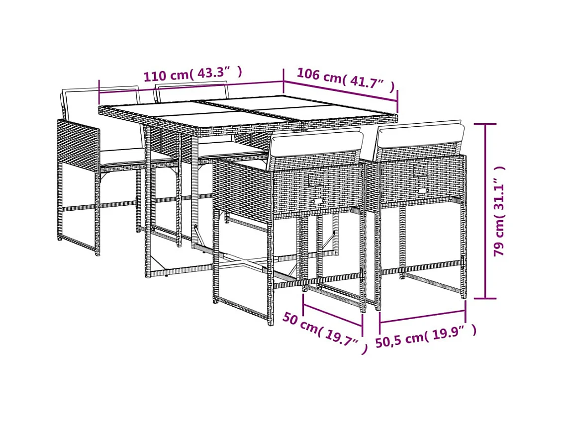 Ensemble à manger de jardin 5 pcs et coussins marron poly rotin