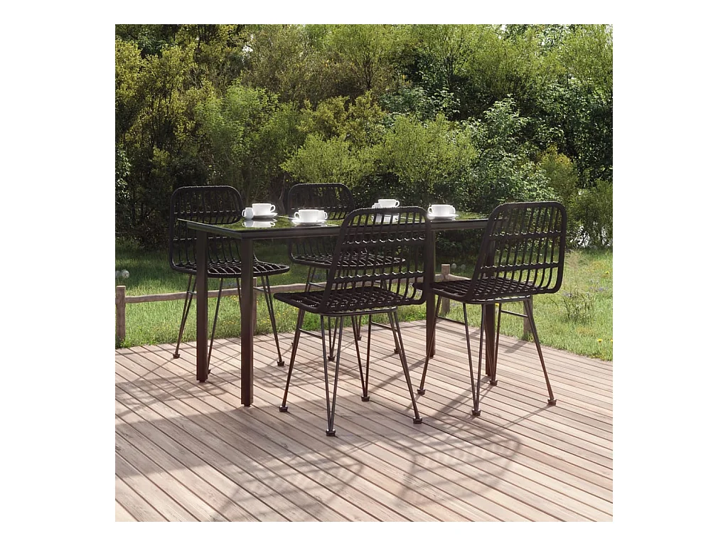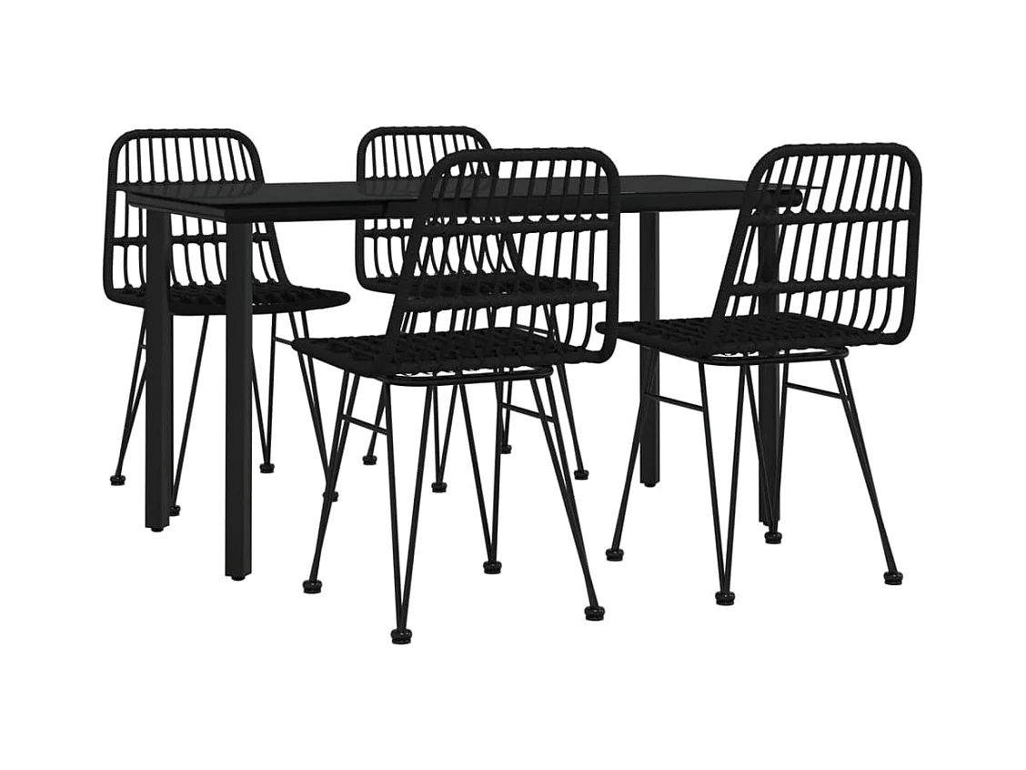 Ensemble à manger de jardin 5 pcs Noir Résine tressée