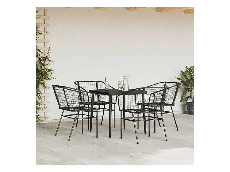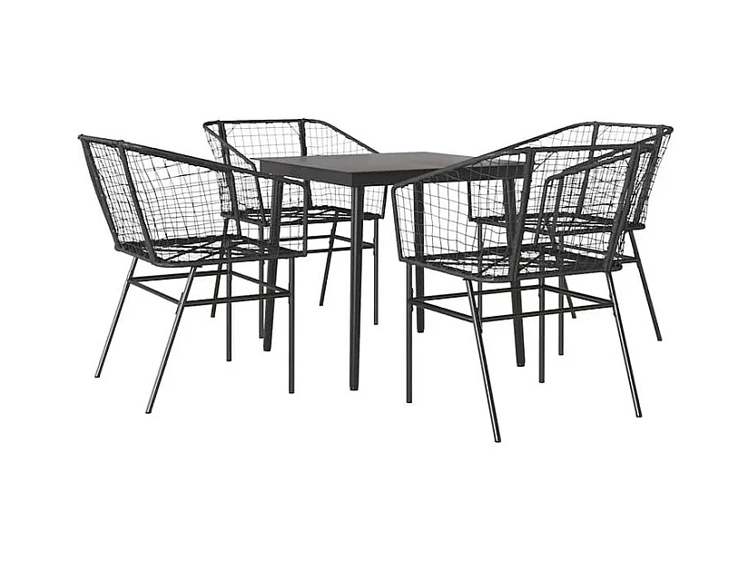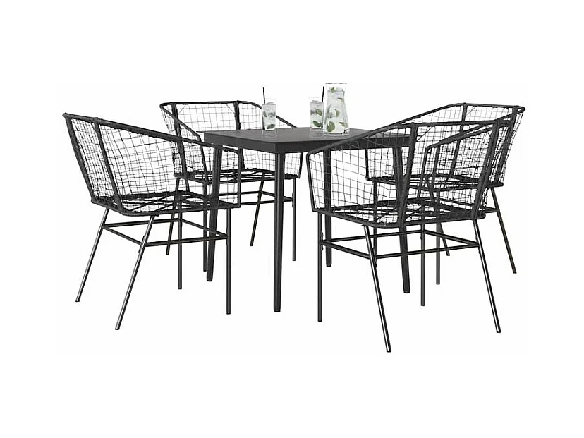 Ensemble à manger de jardin 5 pcs noir résine tressée verre