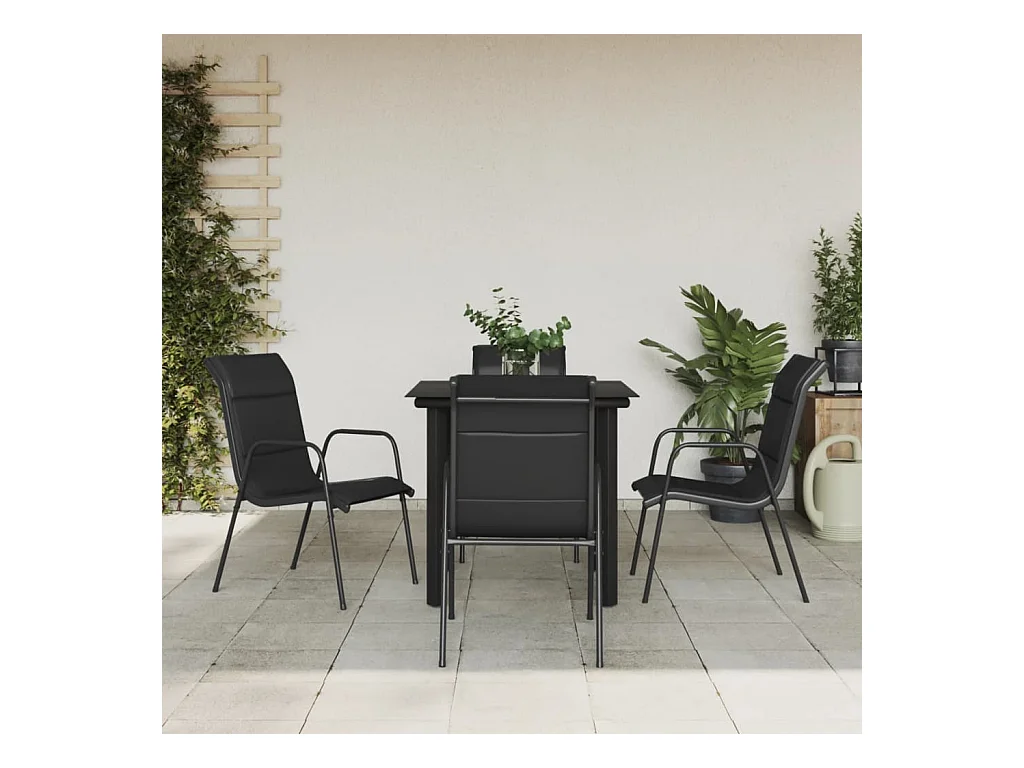 Ensemble à manger de jardin 5 pcs noir textilène et acier