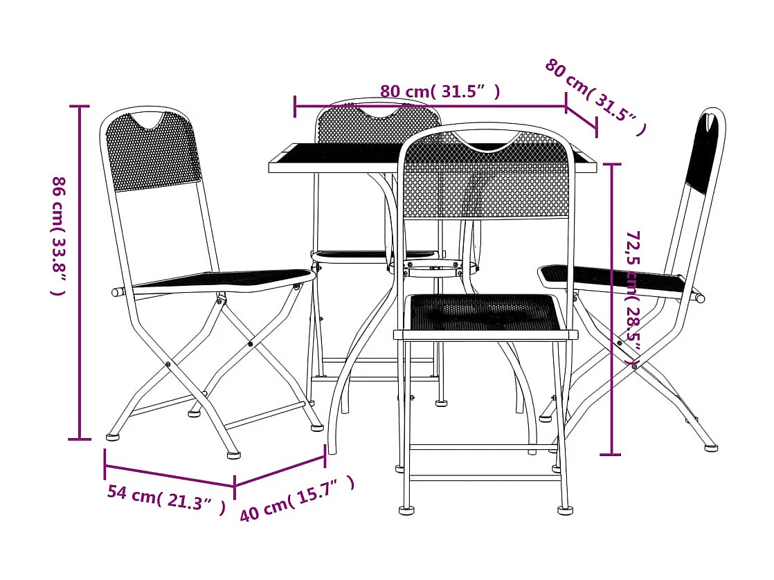 Ensemble à manger de jardin 5 pièces anthracite métal maille