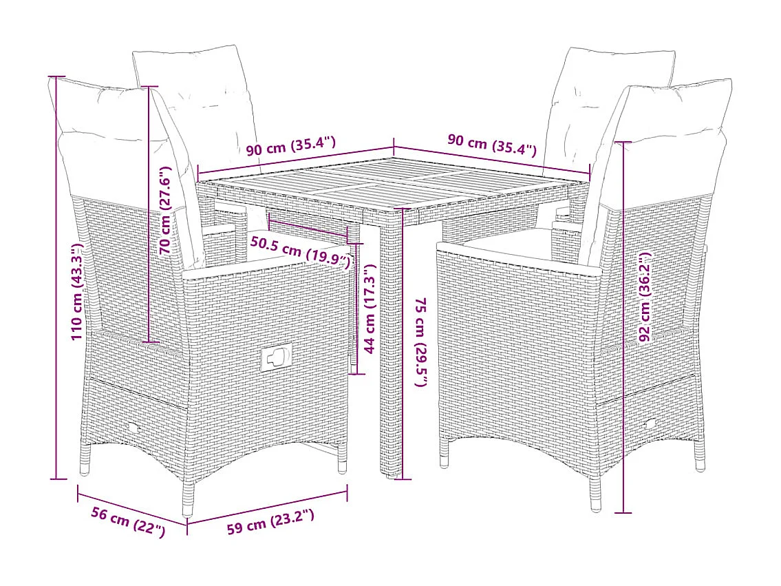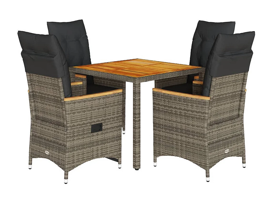 Ensemble à manger de jardin 5 pièces coussins gris résine tressée