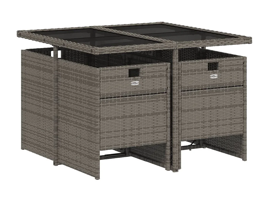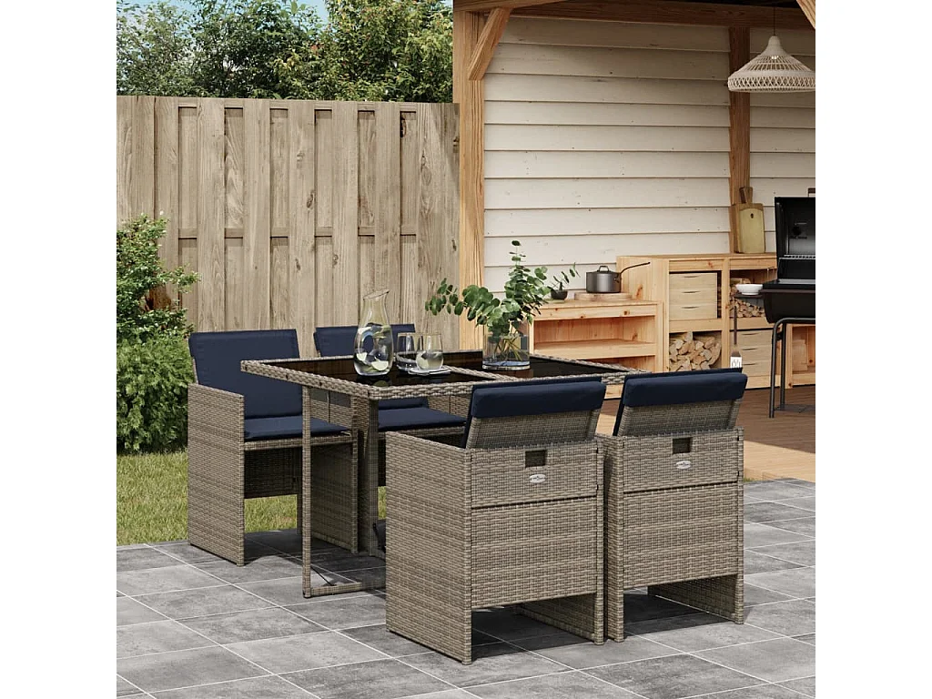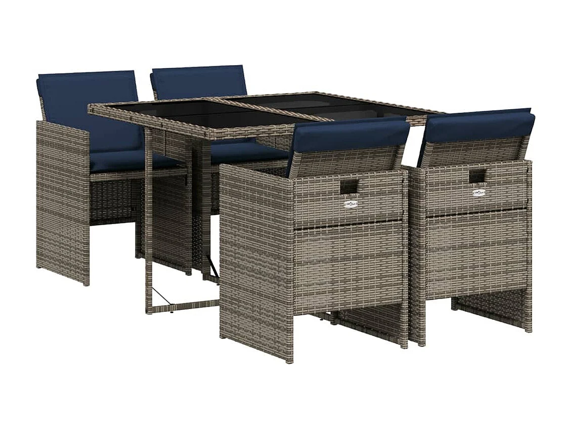 Ensemble à manger de jardin 5 pièces coussins gris résine tressée