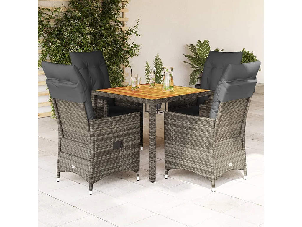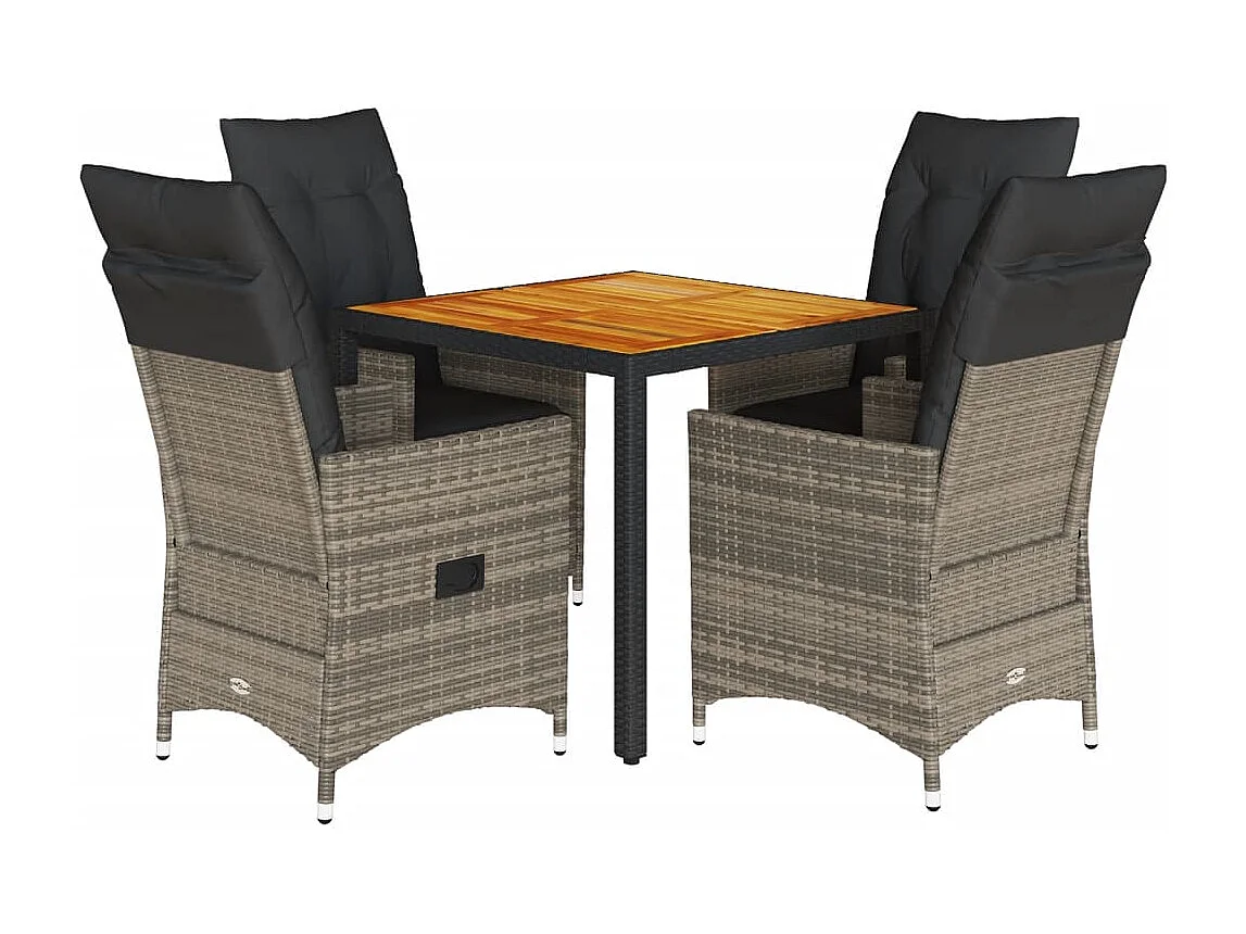 Ensemble à manger de jardin 5 pièces coussins gris résine tressée