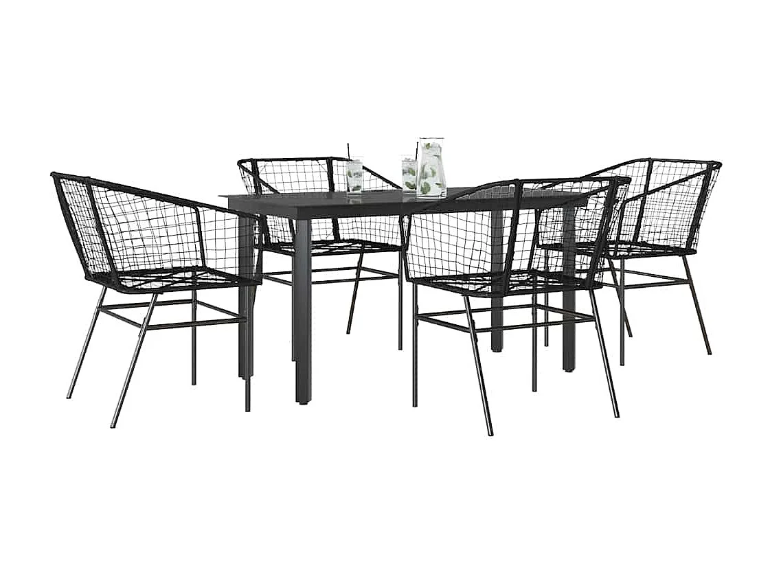Ensemble à manger de jardin 5 pièces noir résine tressée verre
