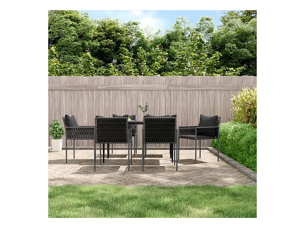 Ensemble à manger de jardin 7 pcs coussins résine tressée acier