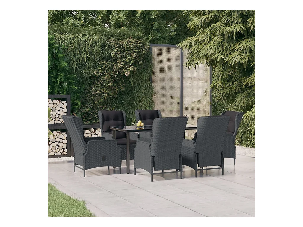 Ensemble à manger de jardin 7 pcs Gris foncé Résine tressée