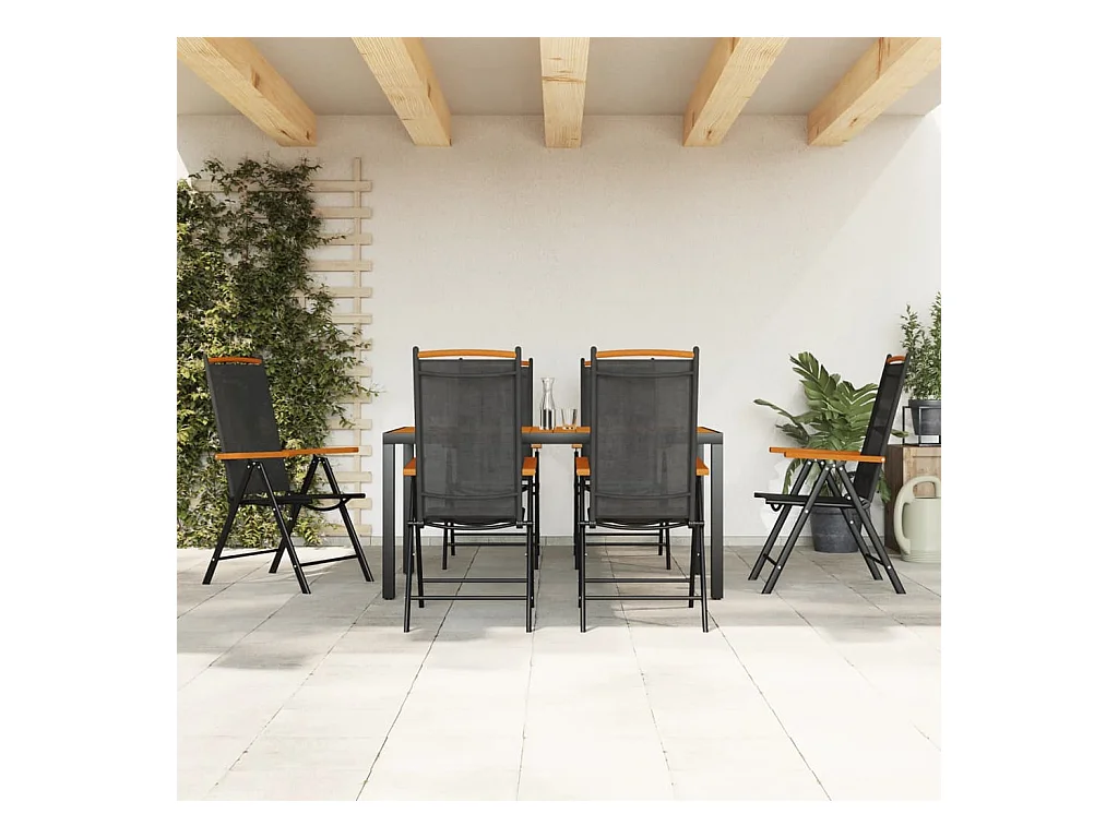 Ensemble à manger de jardin 7 pcs noir et marron aluminium