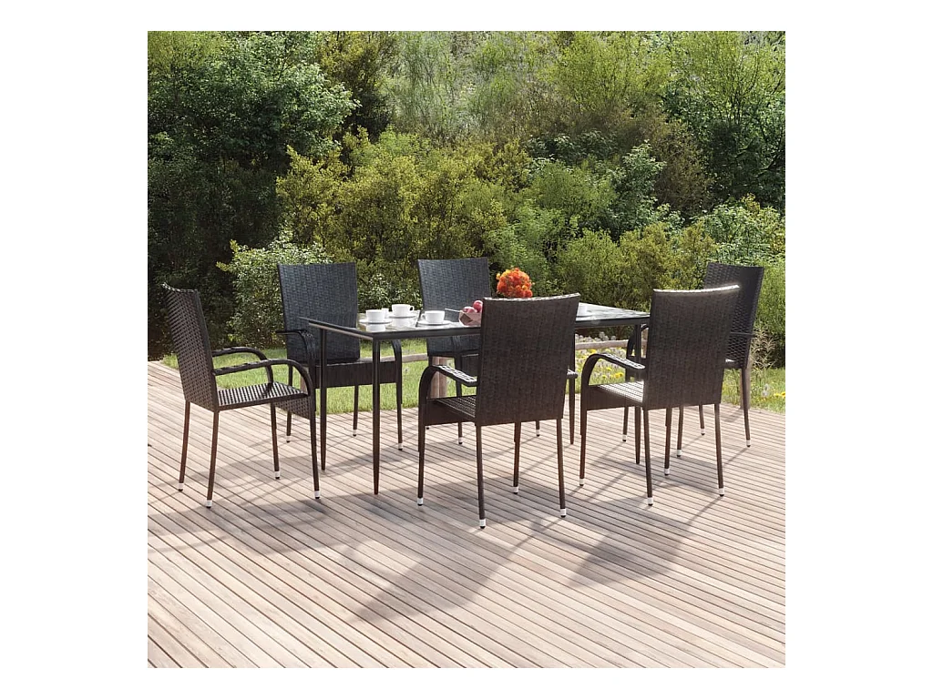 Ensemble à manger de jardin 7 pcs Noir Résine tressée