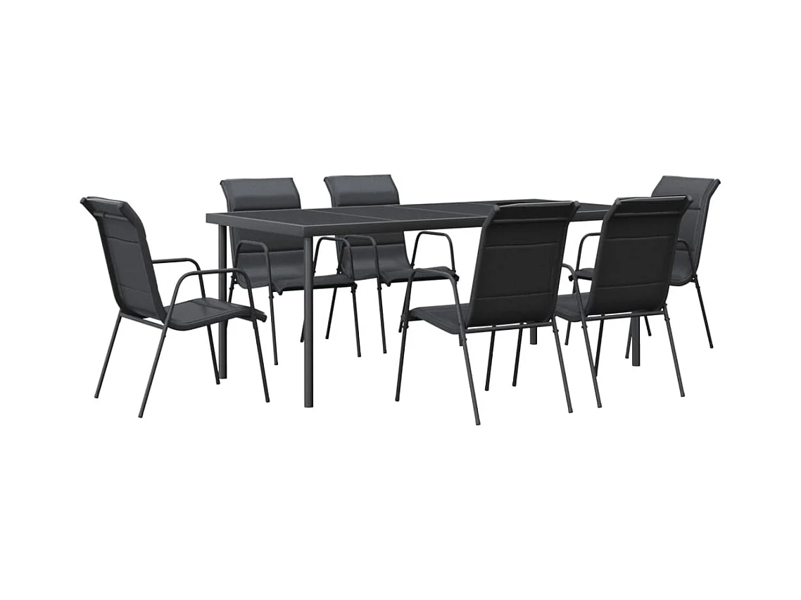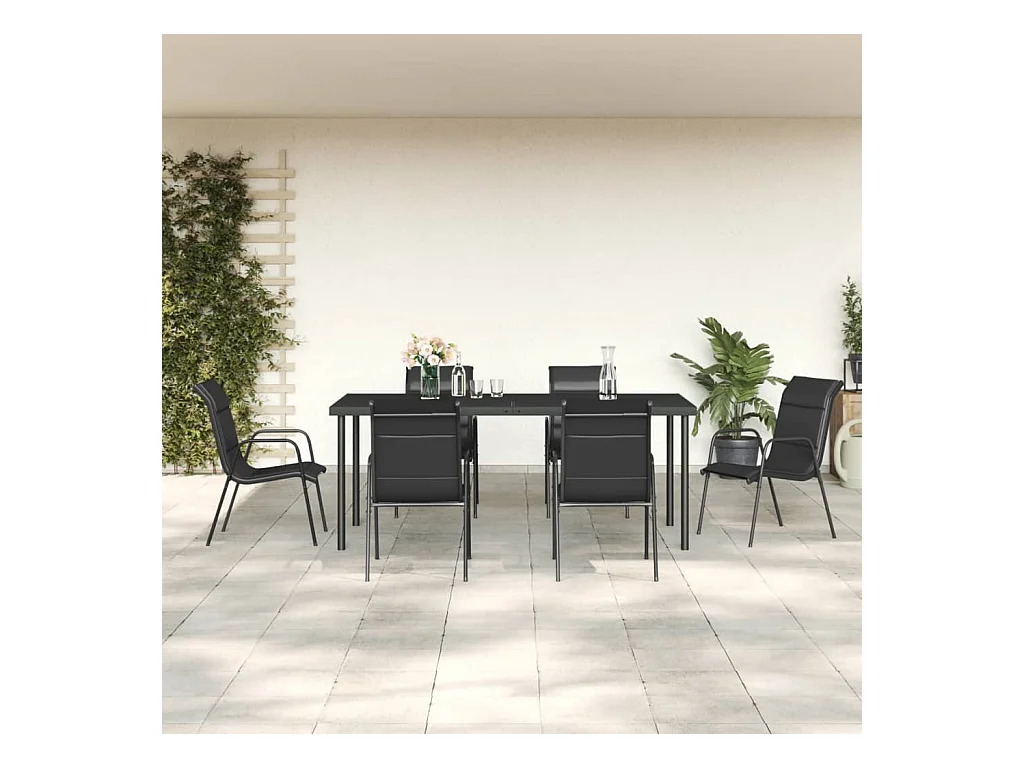 Ensemble à manger de jardin 7 pcs noir textilène et acier