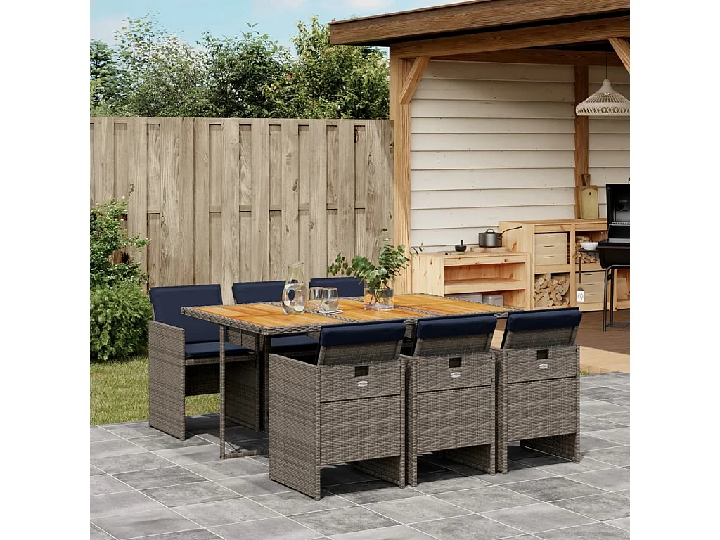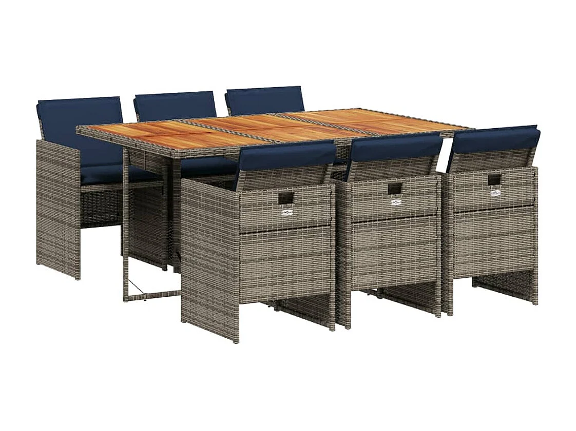 Ensemble à manger de jardin 7 pièces coussins gris résine tressée
