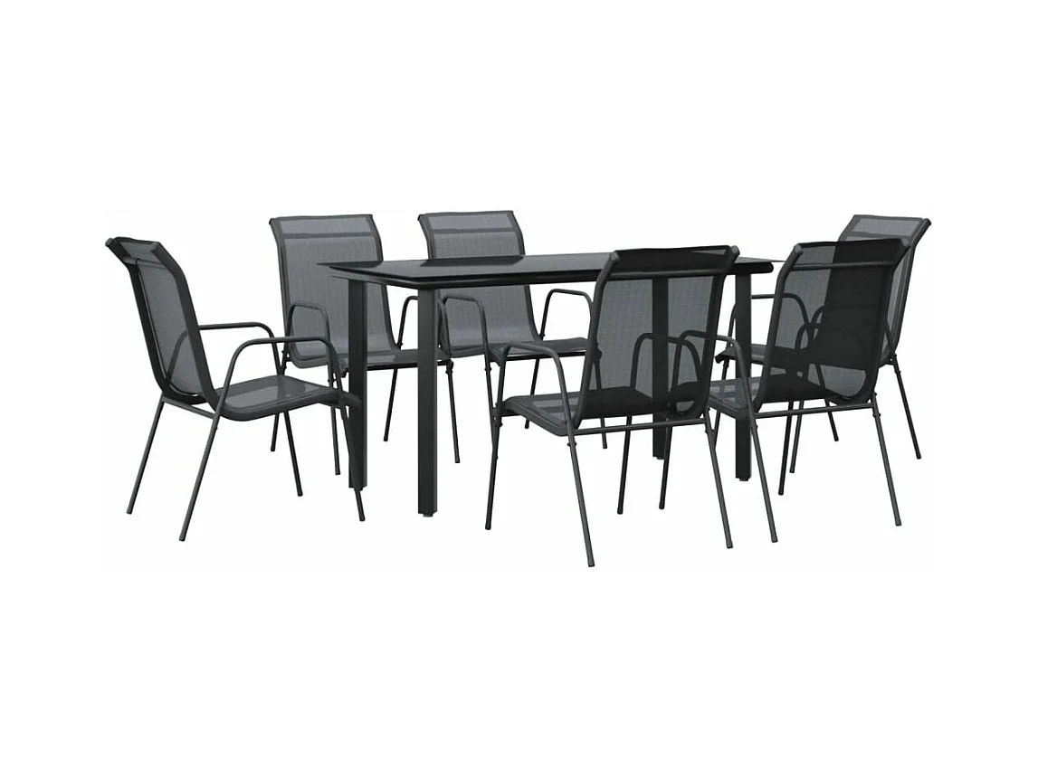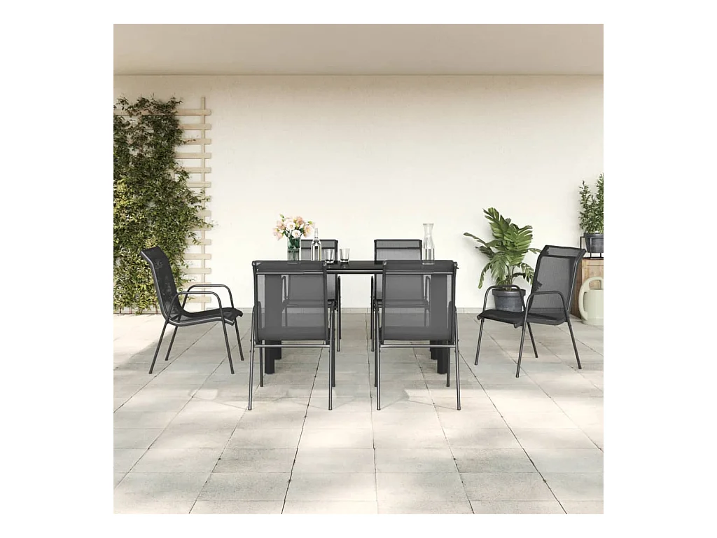 Ensemble à manger de jardin 7 pièces noir textilène et acier