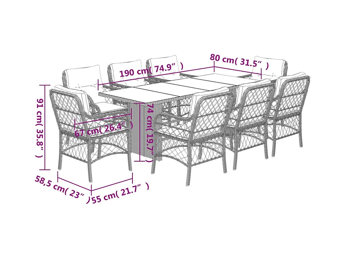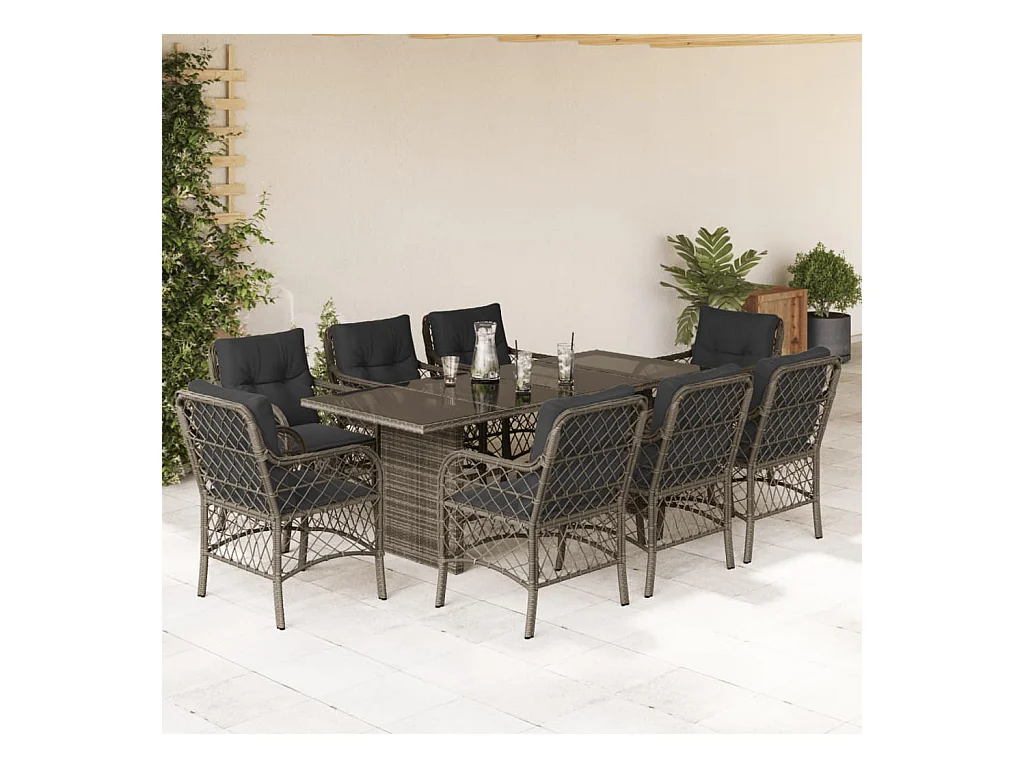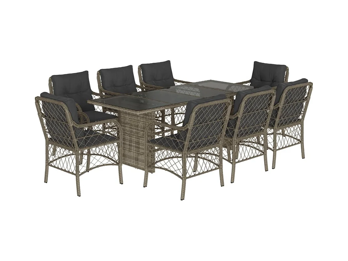 Ensemble à manger de jardin 9 pcs coussins gris résine tressée
