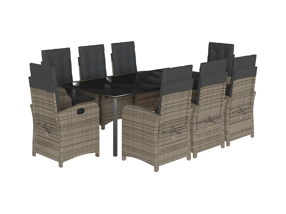 Ensemble à manger de jardin 9 pcs coussins gris résine tressée