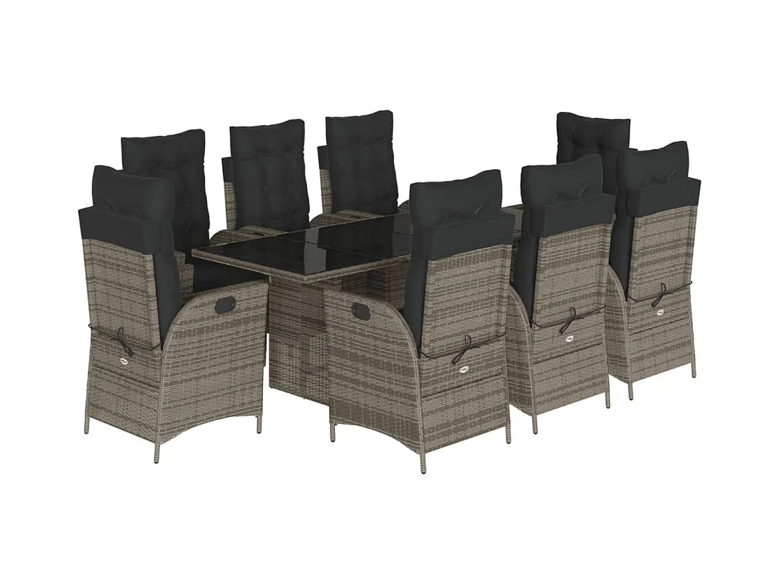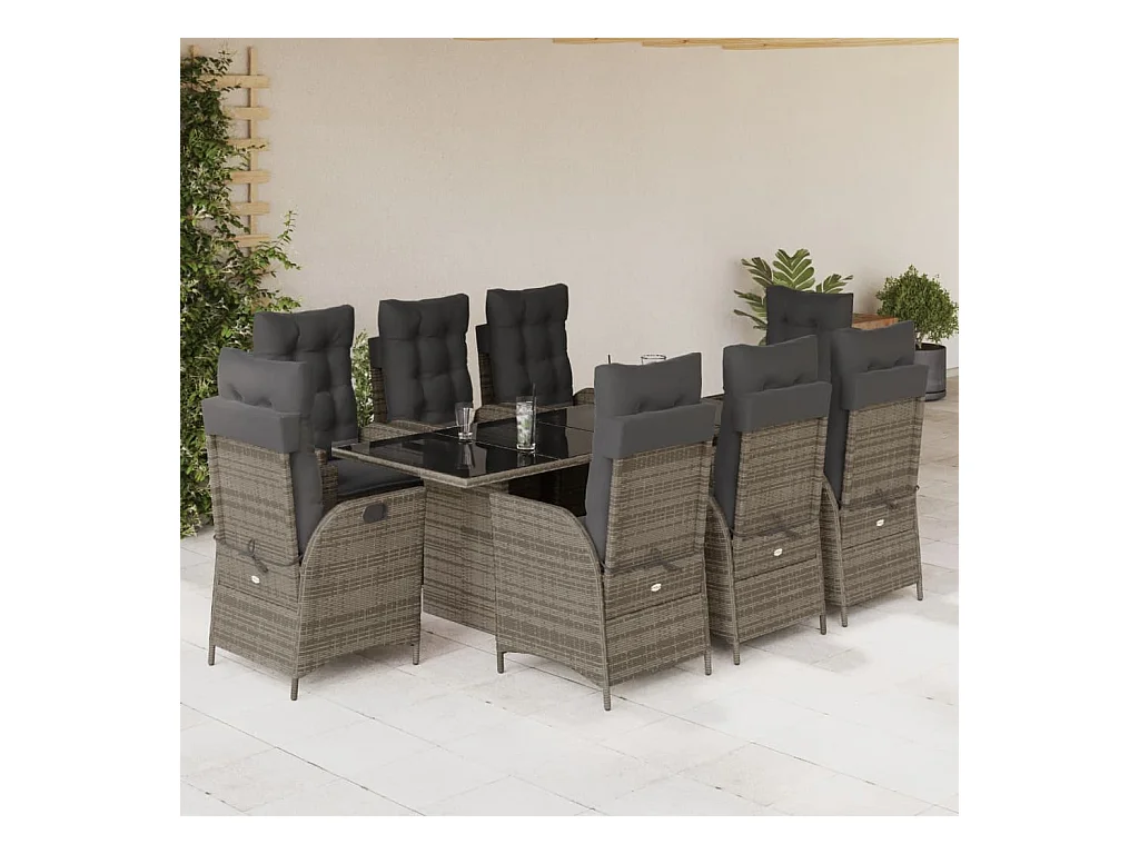 Ensemble à manger de jardin 9 pcs coussins gris résine tressée