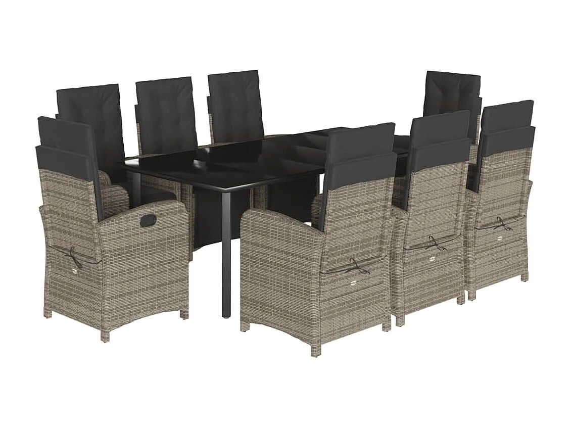 Ensemble à manger de jardin 9 pcs coussins gris résine tressée