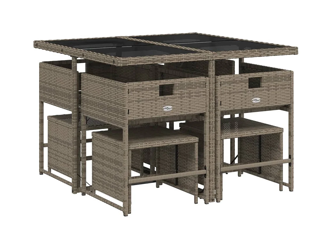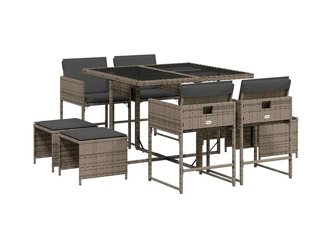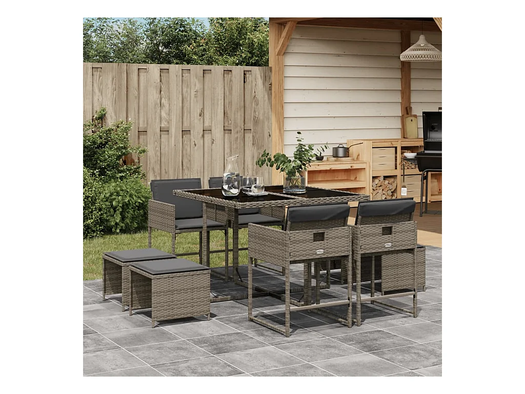 Ensemble à manger de jardin 9 pcs coussins gris résine tressée FR38724