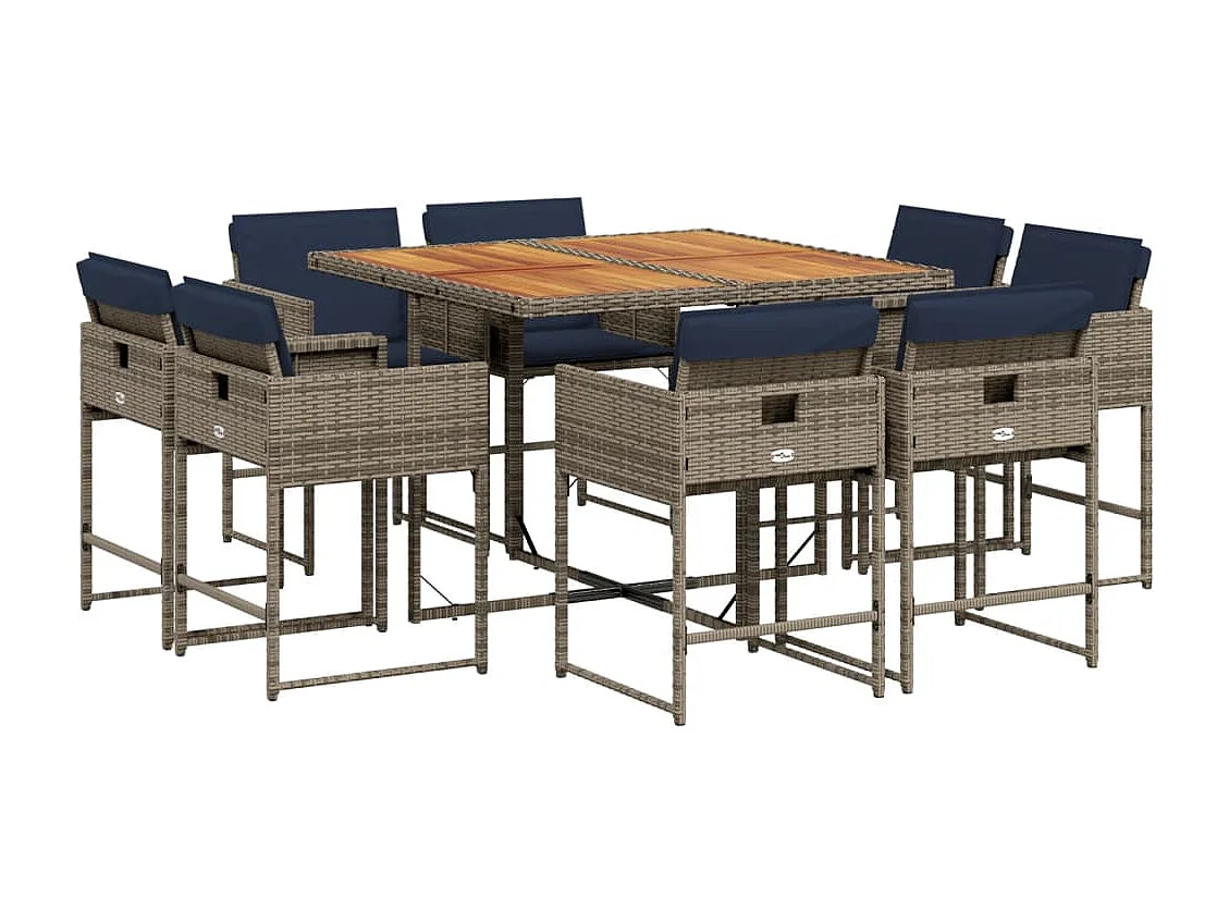 Ensemble à manger de jardin 9 pièces coussins gris résine tressée