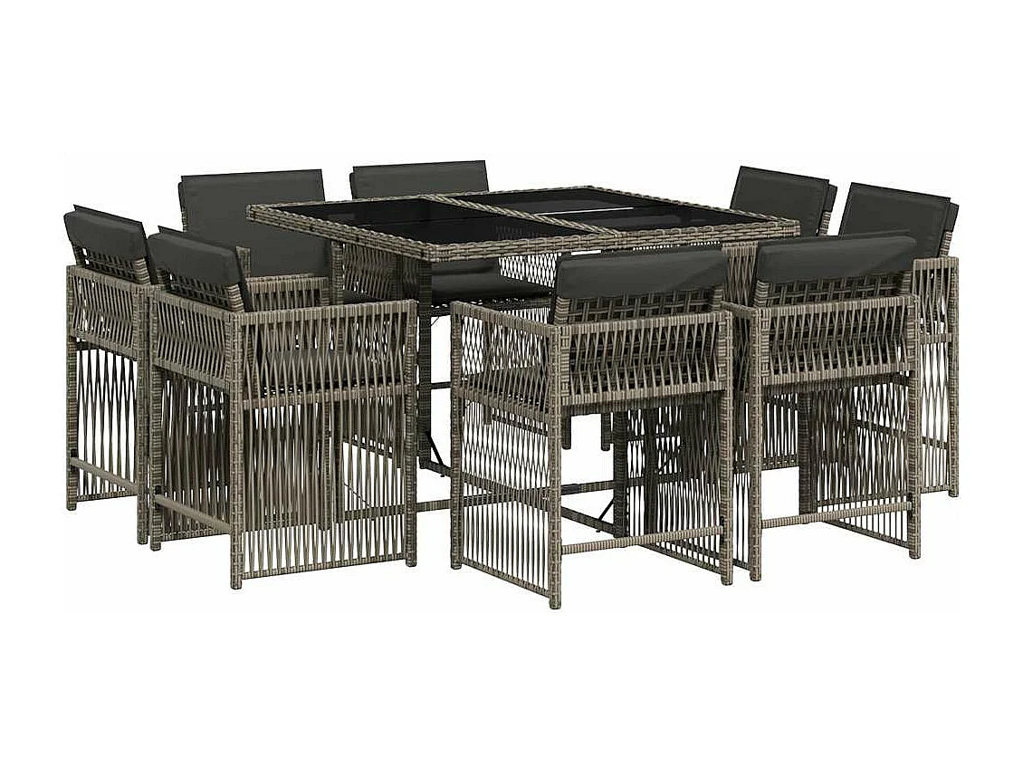 Ensemble à manger de jardin 9 pièces coussins gris résine tressée