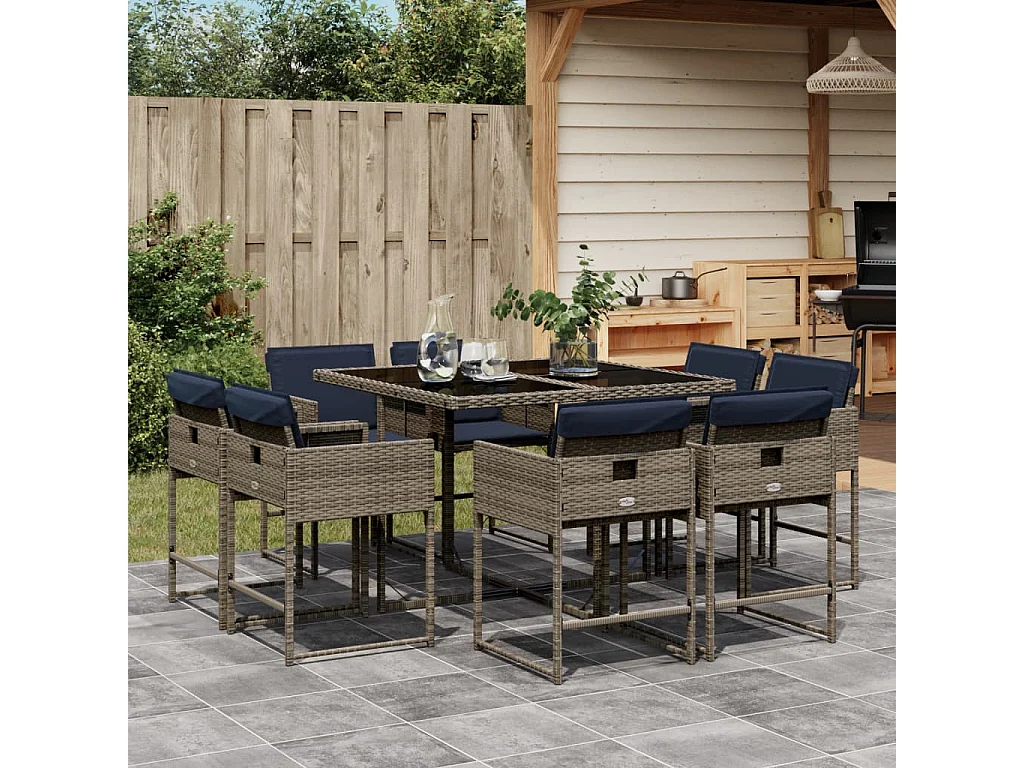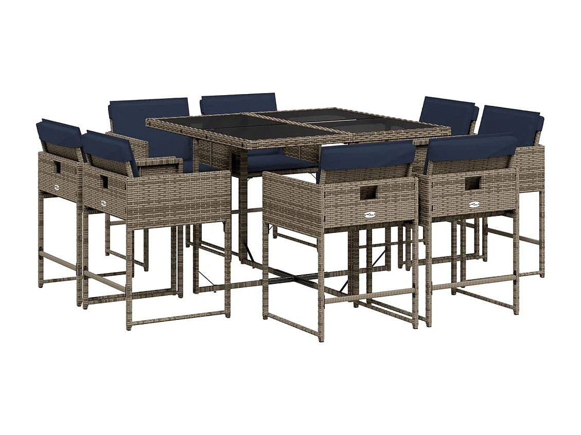 Ensemble à manger de jardin 9 pièces coussins gris résine tressée