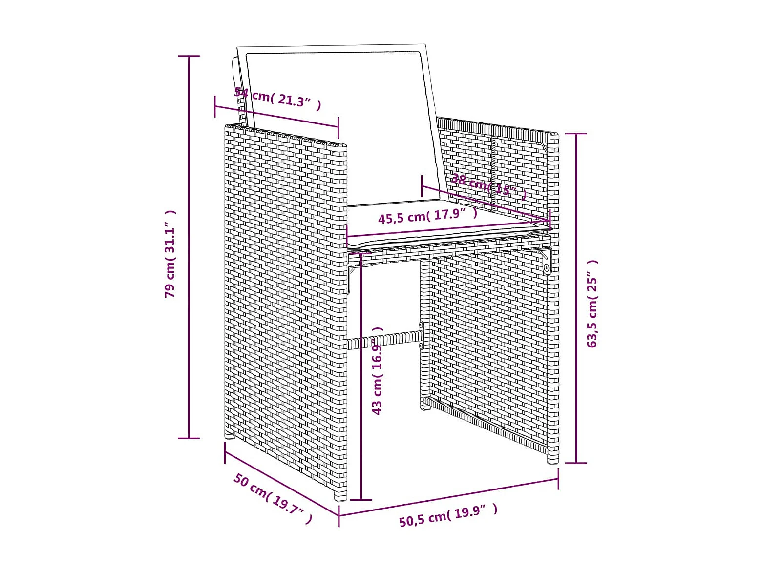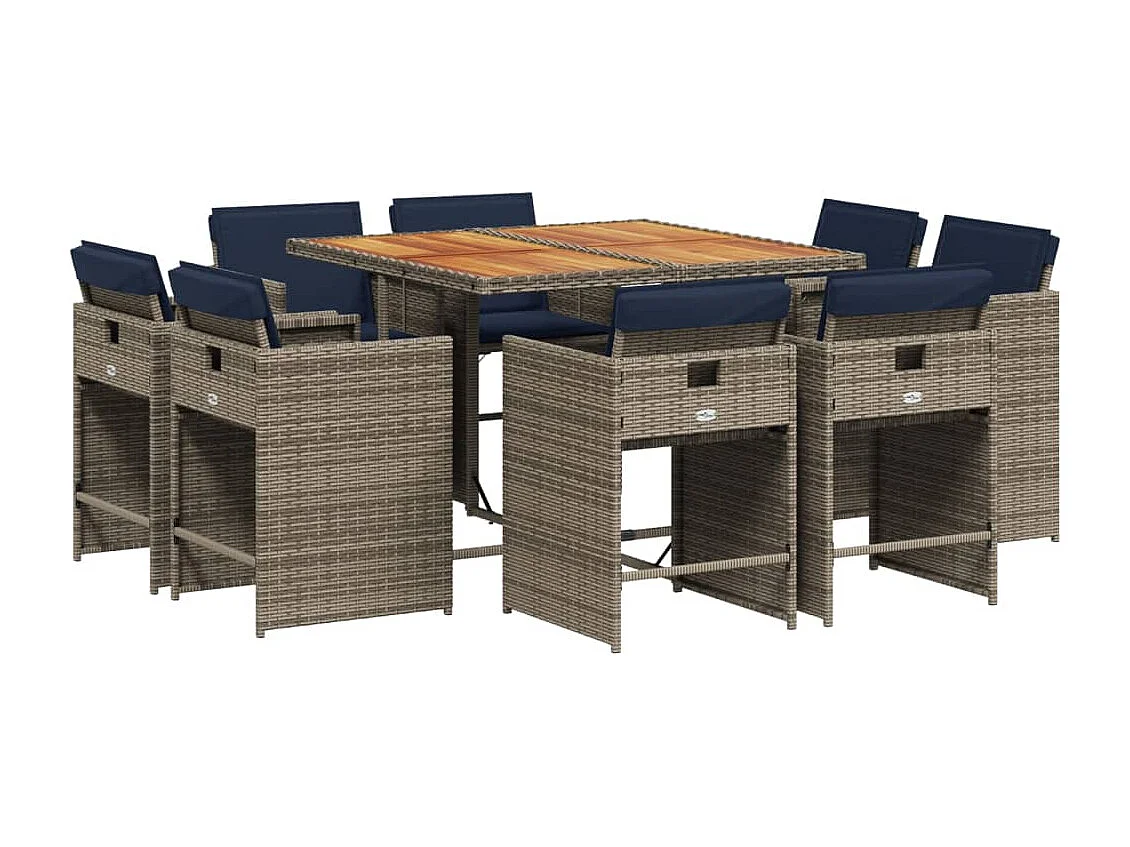 Ensemble à manger de jardin 9 pièces coussins gris résine tressée