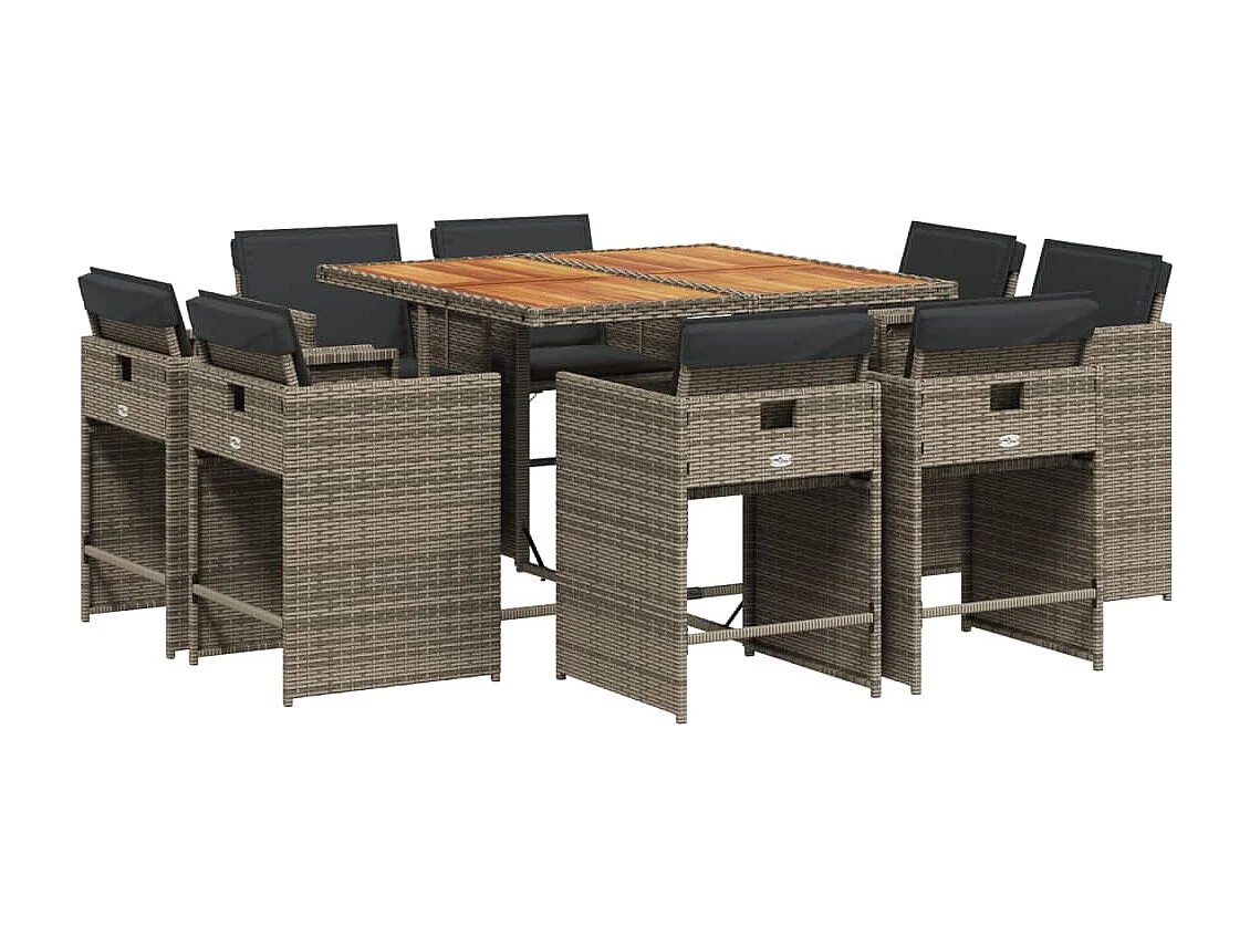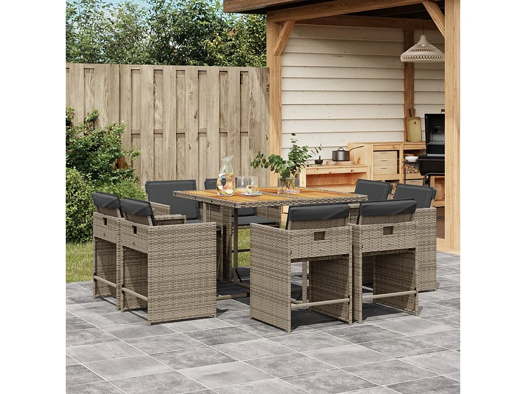 Ensemble à manger de jardin 9 pièces coussins gris résine tressée