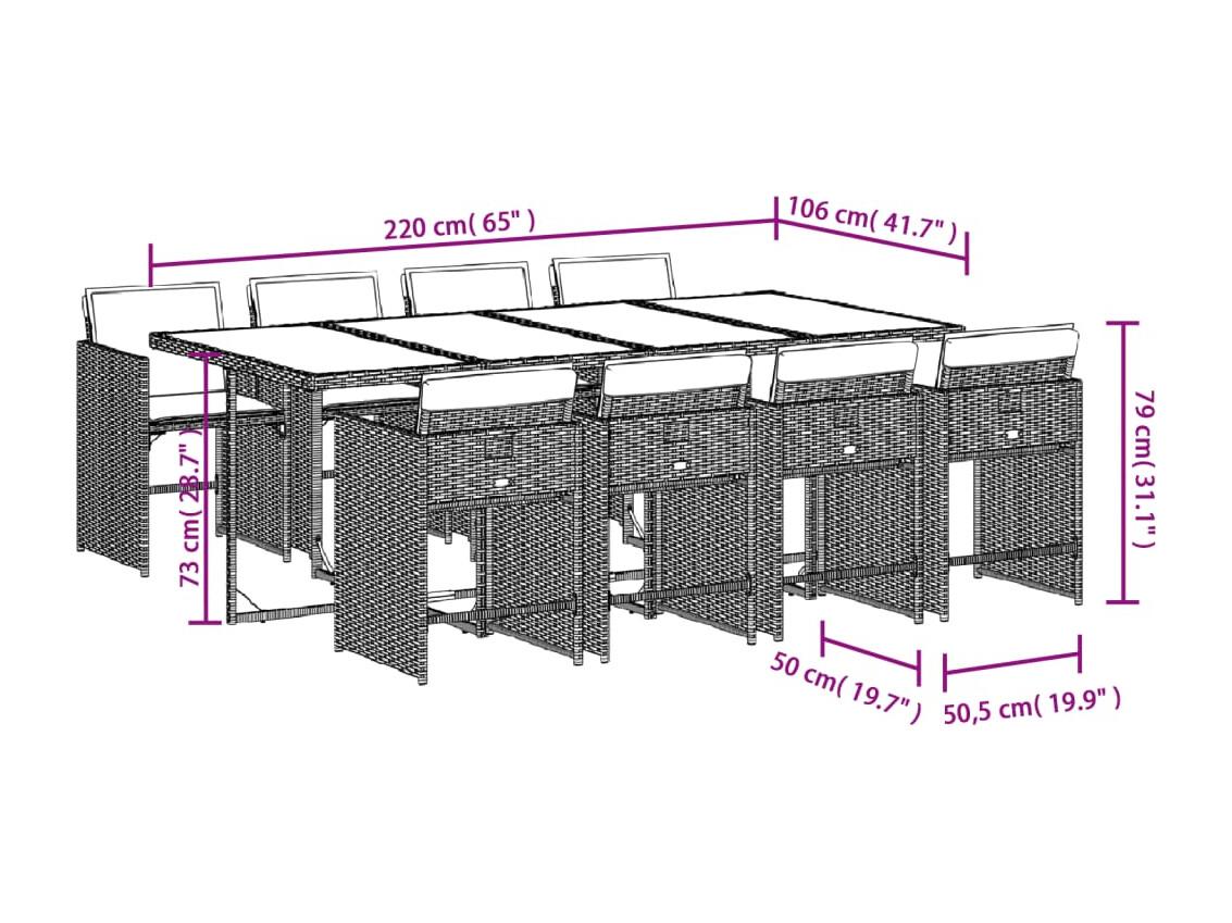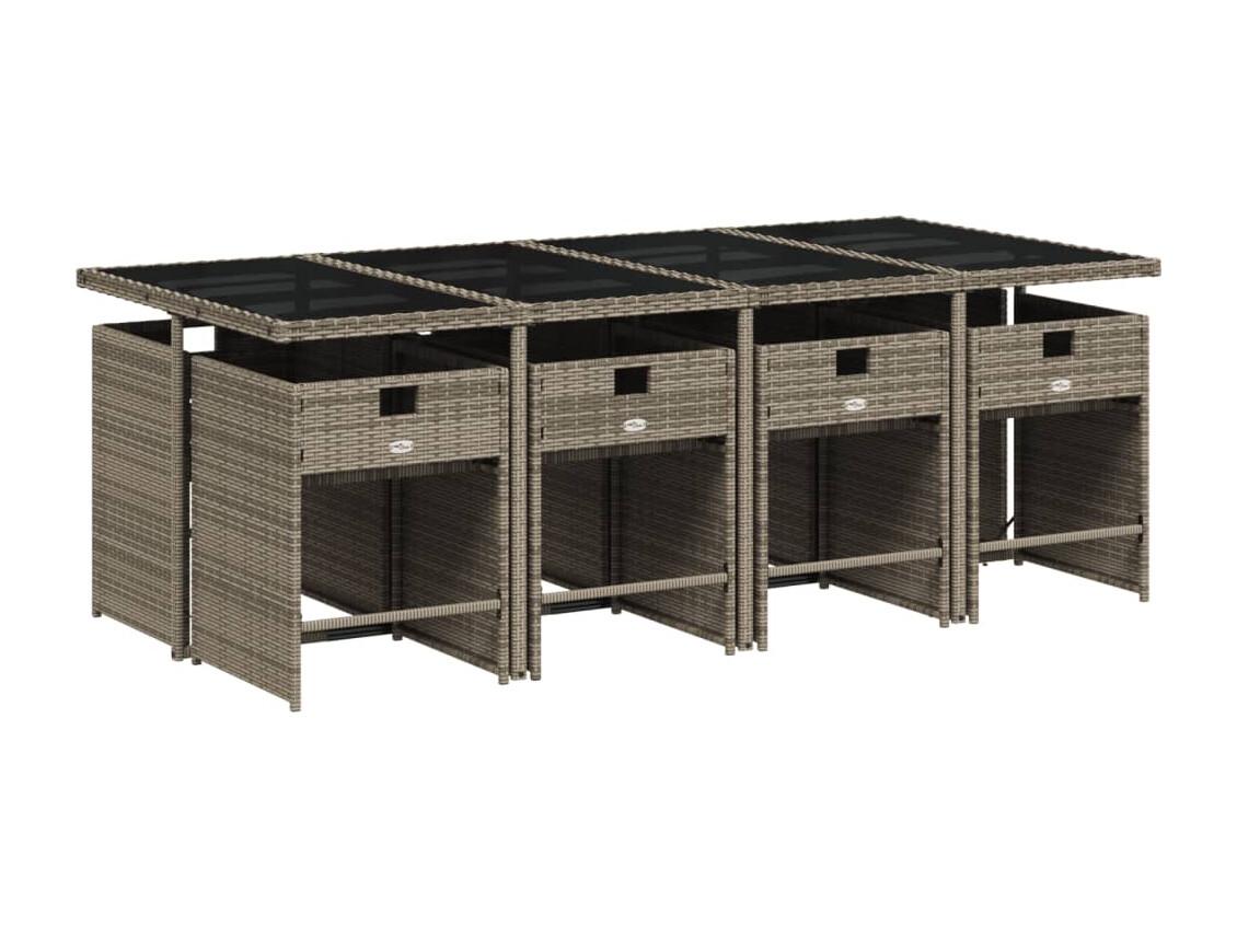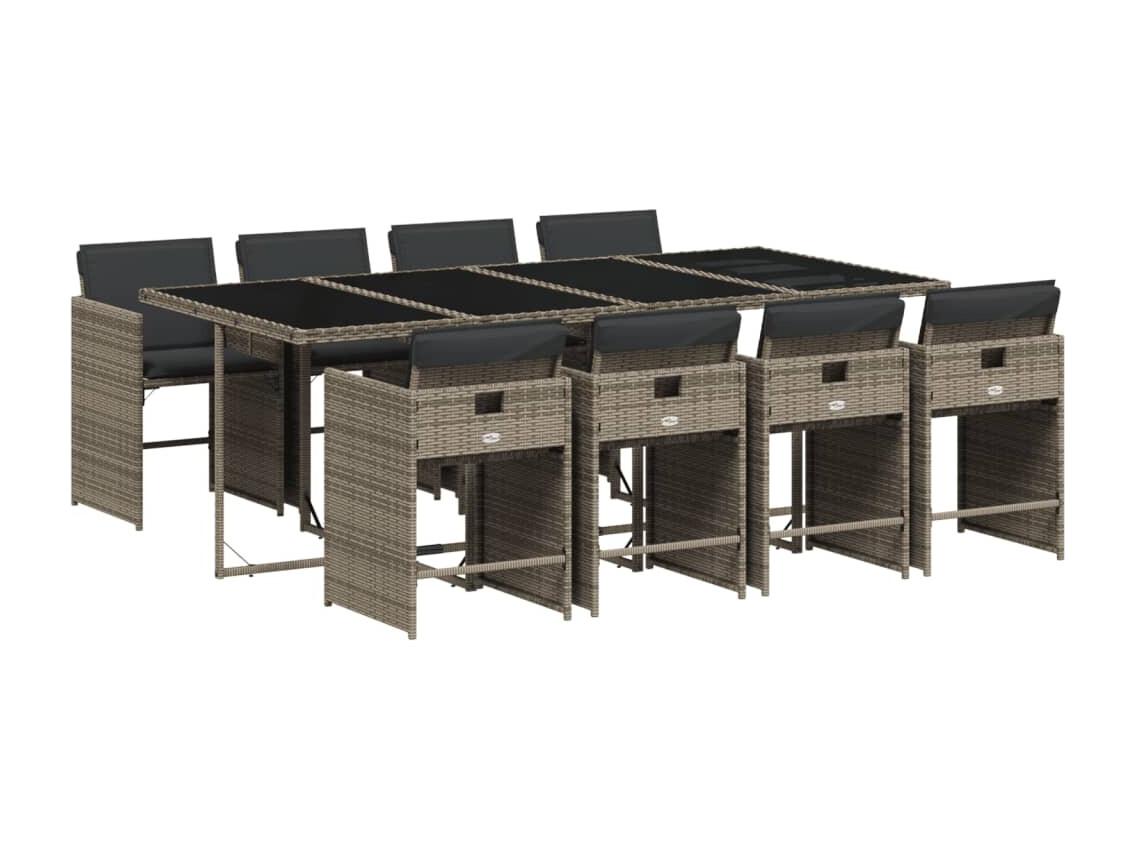 Ensemble à manger de jardin 9 pièces coussins gris résine tressée