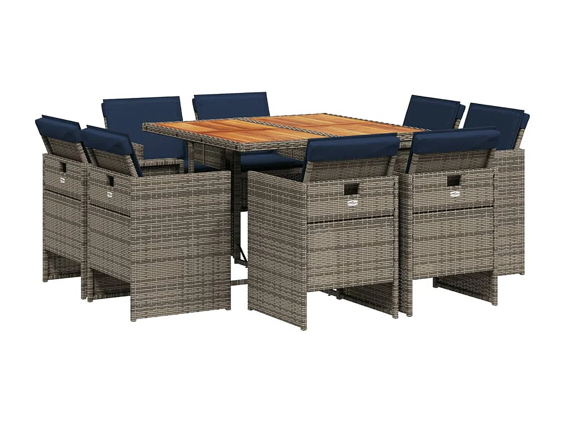 Ensemble à manger de jardin 9 pièces coussins gris résine tressée