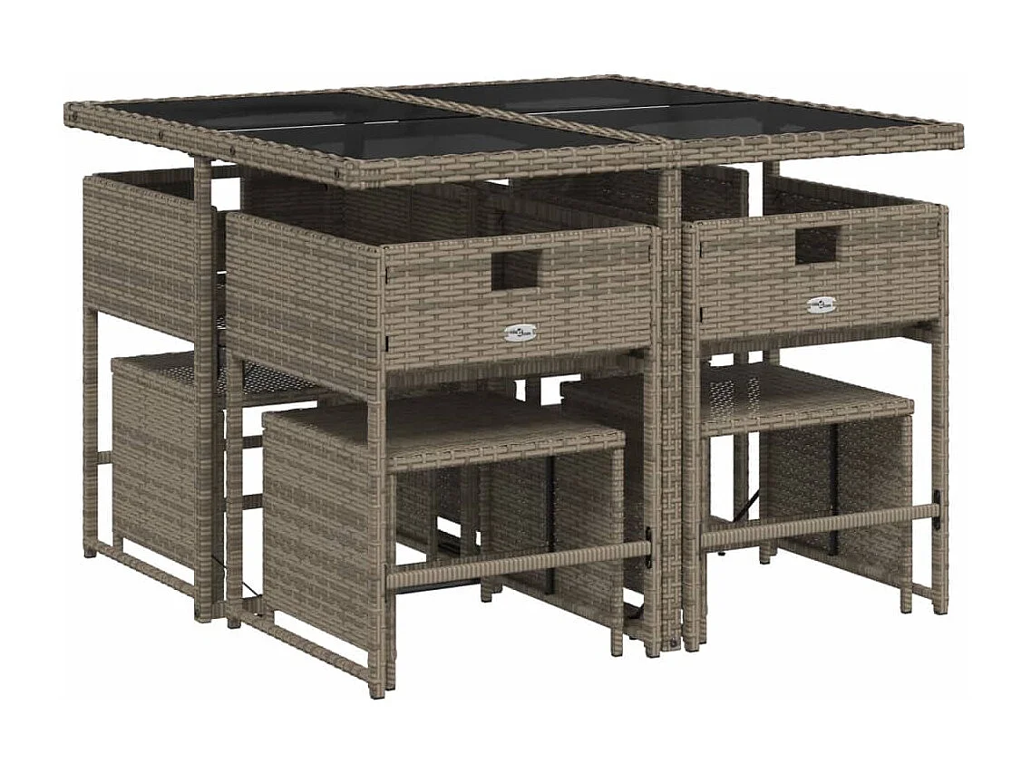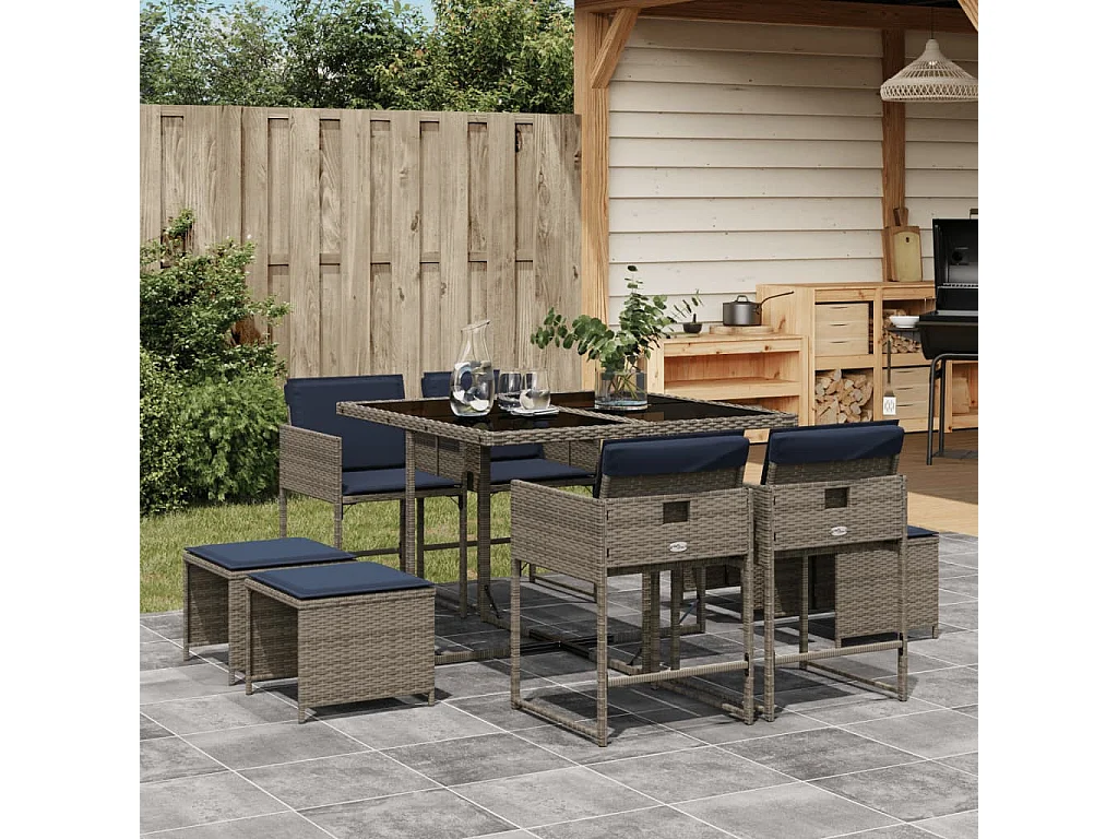 Ensemble à manger de jardin 9 pièces coussins gris résine tressée