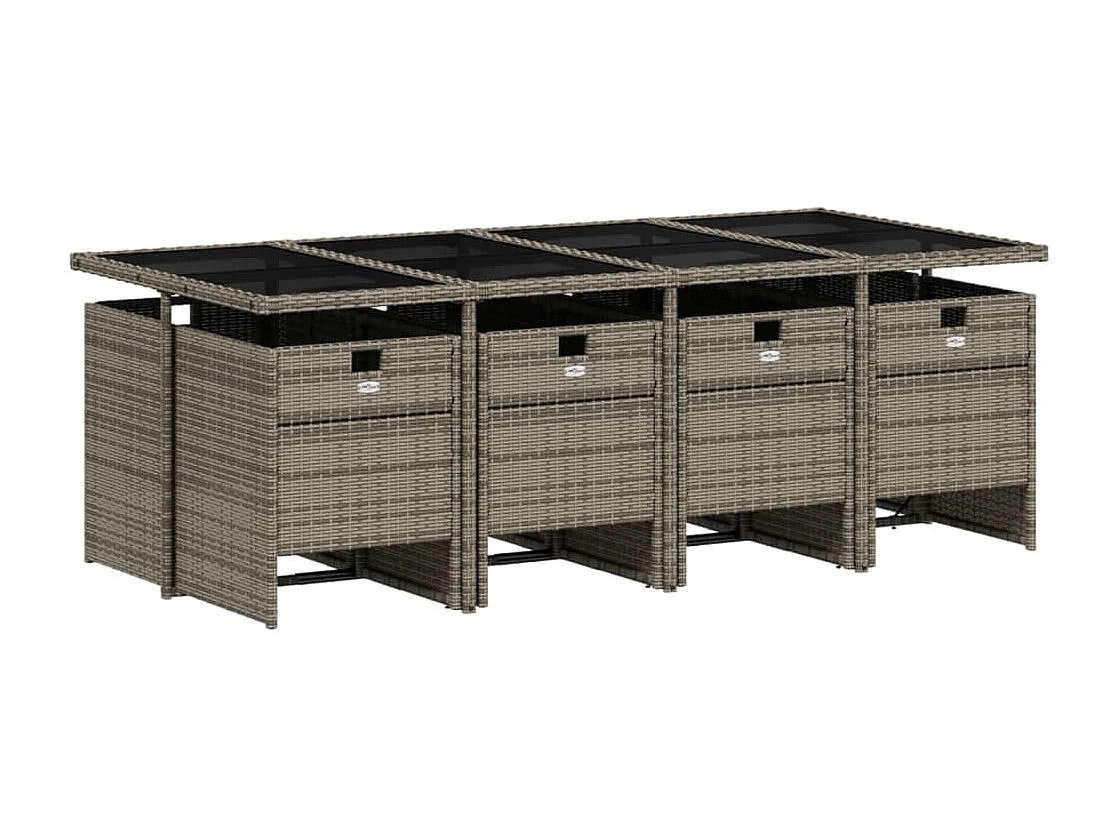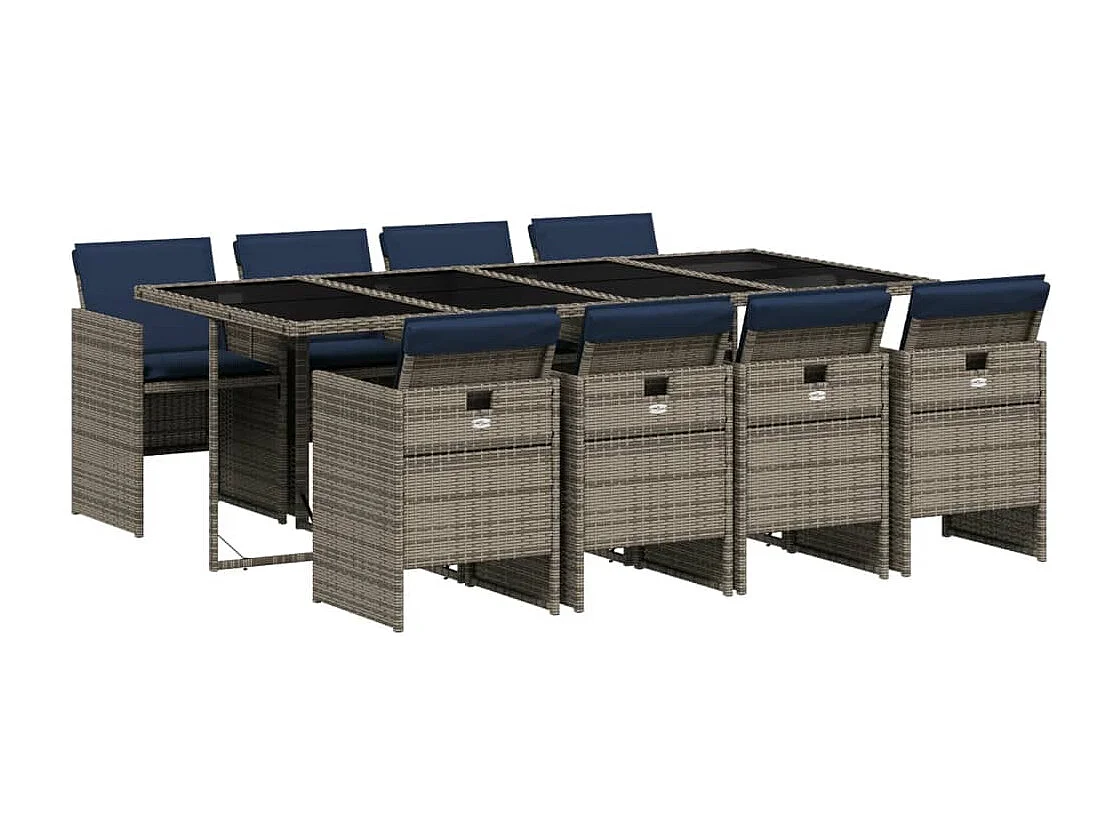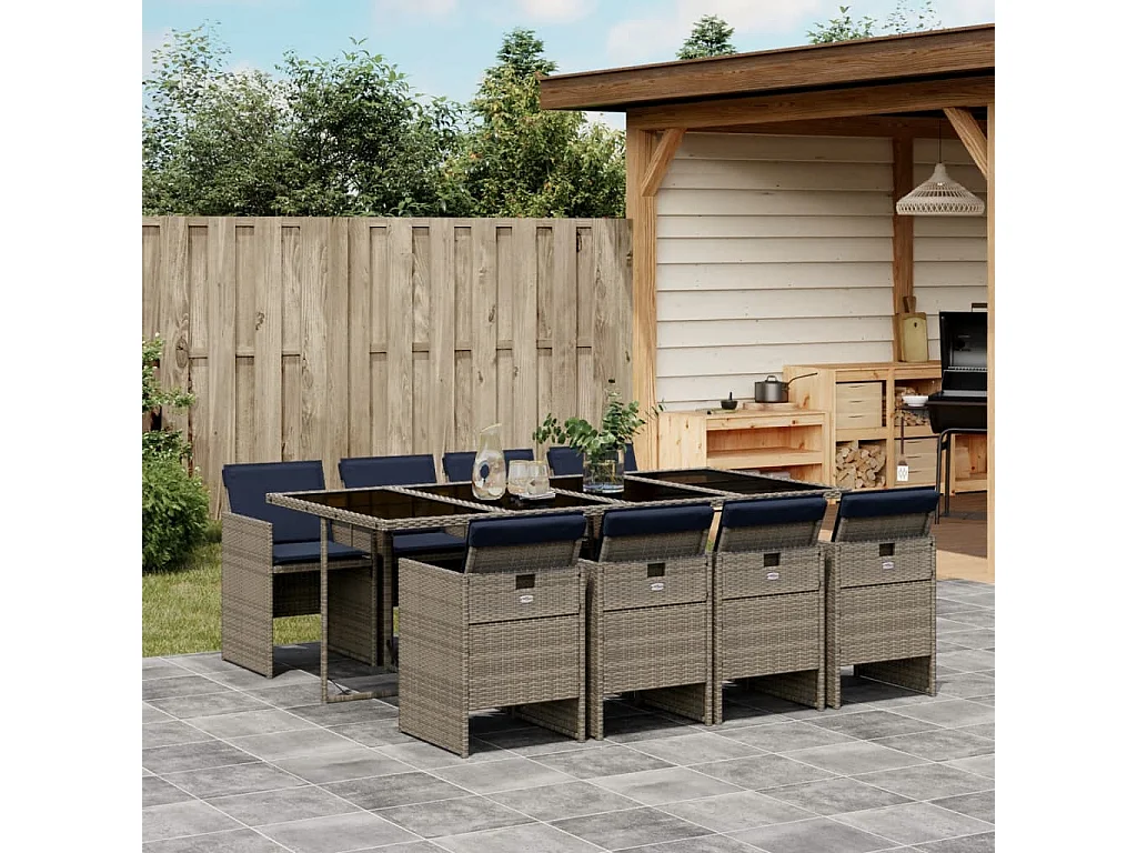 Ensemble à manger de jardin 9 pièces coussins gris résine tressée
