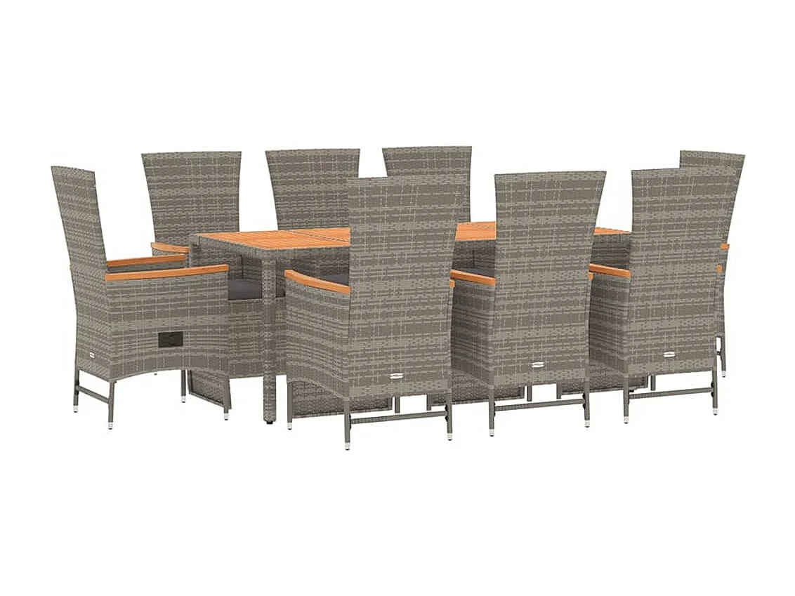 Ensemble à manger de jardin 9 pièces coussins gris résine tressée