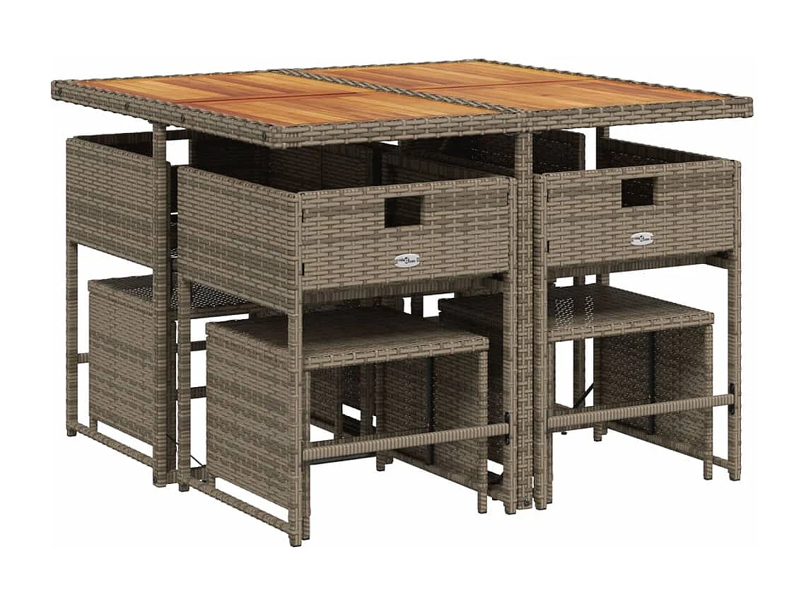 Ensemble à manger de jardin 9 pièces coussins gris résine tressée