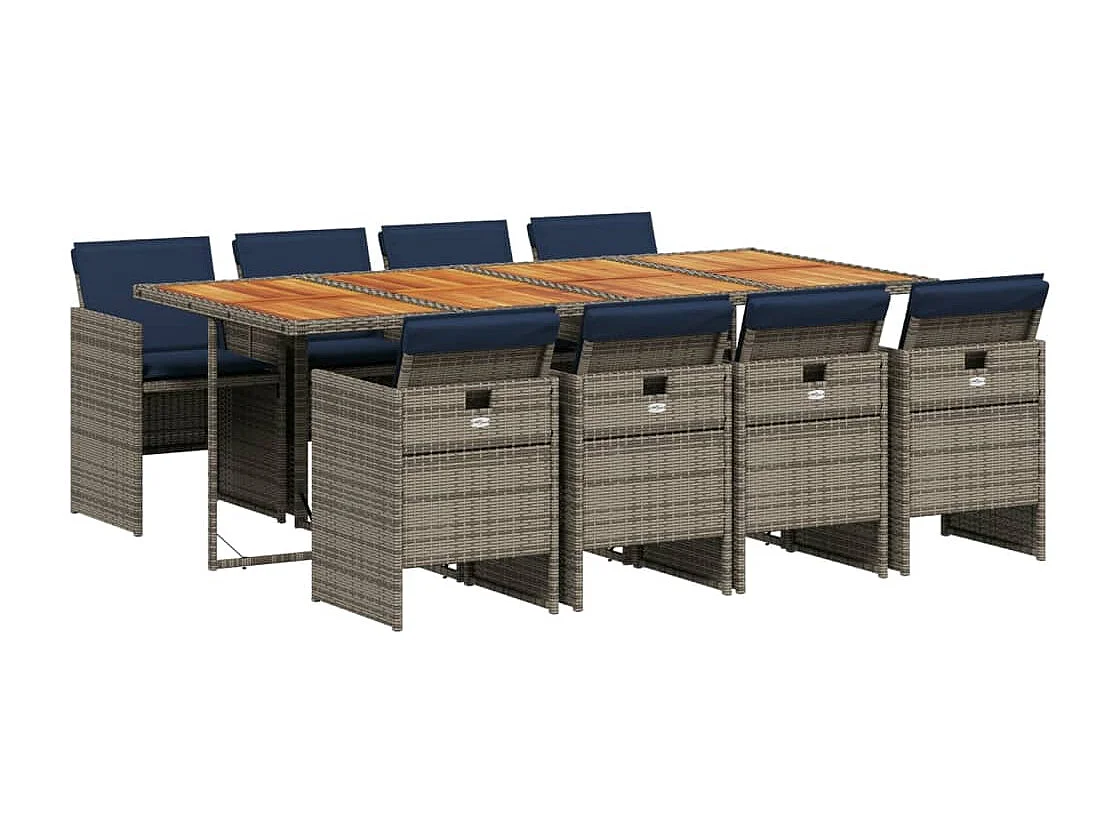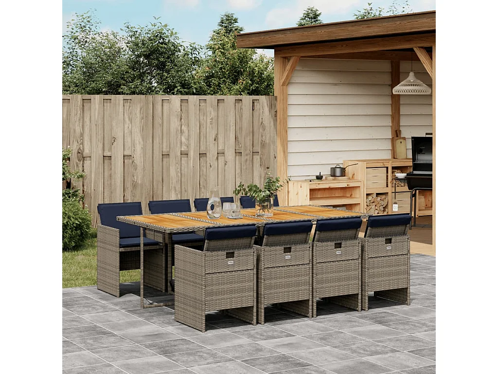 Ensemble à manger de jardin 9 pièces coussins gris résine tressée