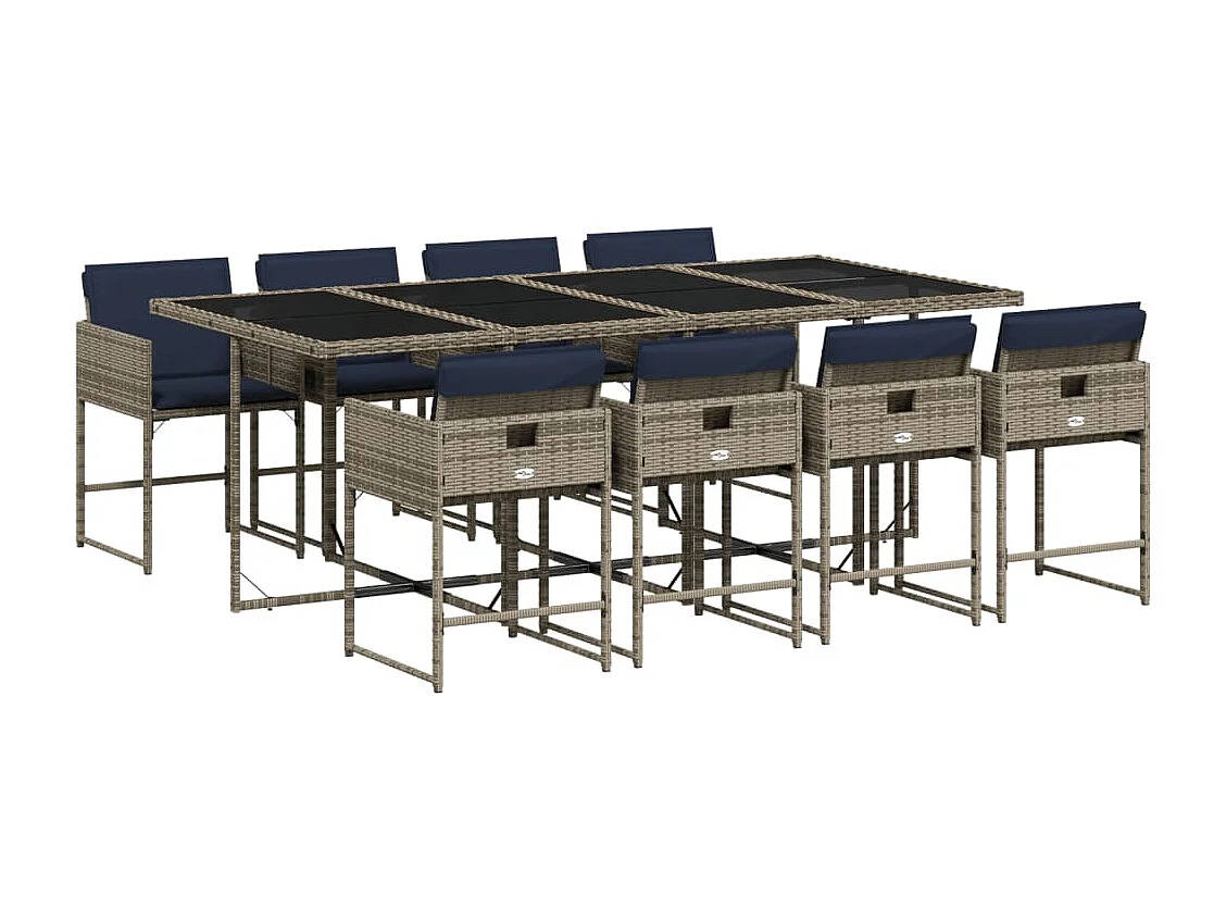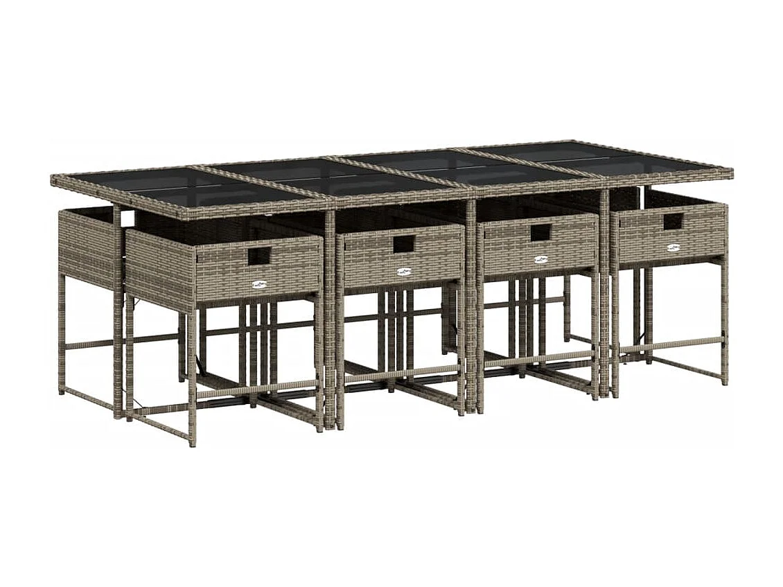 Ensemble à manger de jardin 9 pièces coussins gris résine tressée