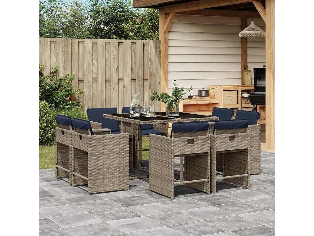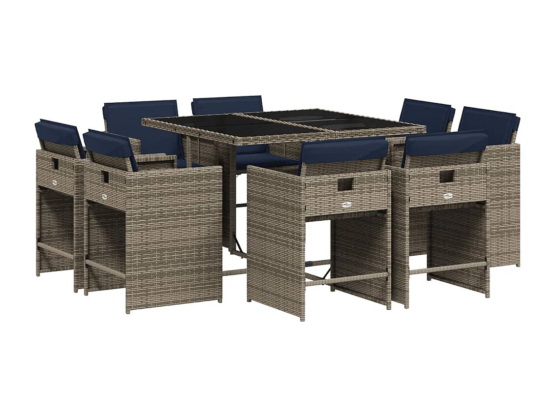 Ensemble à manger de jardin 9 pièces coussins gris résine tressée