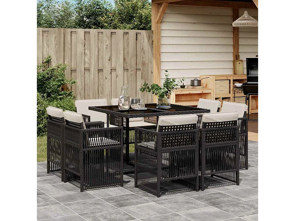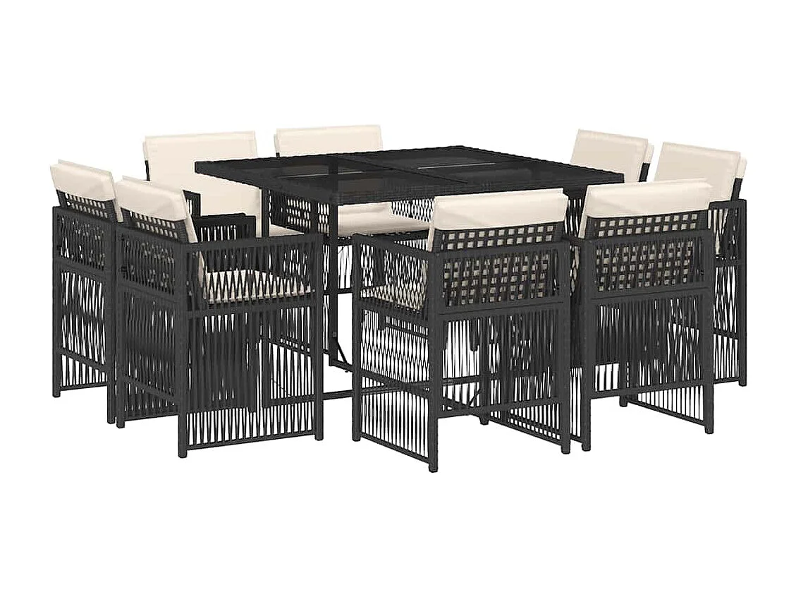 Ensemble à manger de jardin 9 pièces coussins noir résine tressée