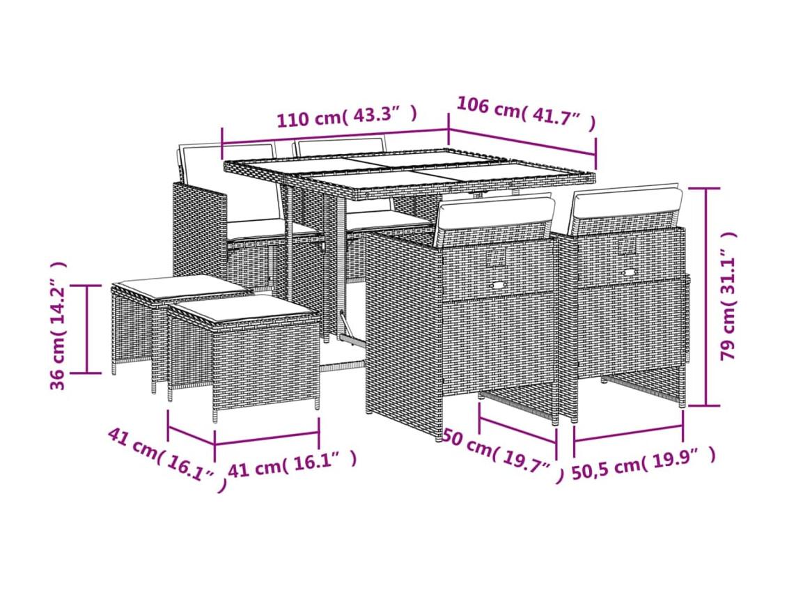 Ensemble à manger de jardin 9 pièces coussins noir résine tressée