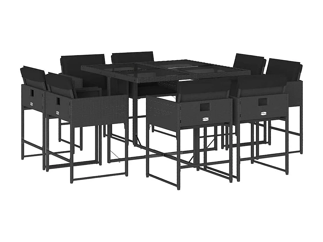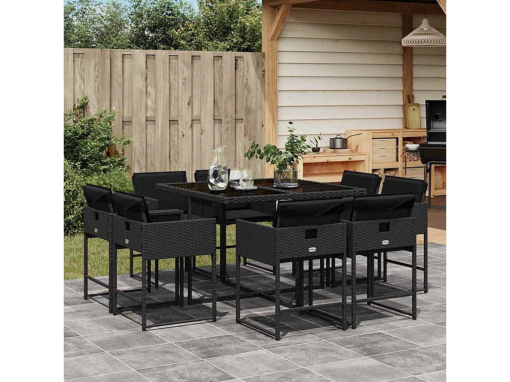 Ensemble à manger de jardin 9 pièces coussins noir résine tressée