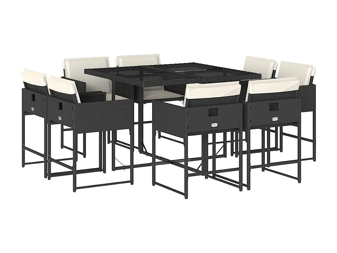 Ensemble à manger de jardin 9 pièces coussins noir résine tressée