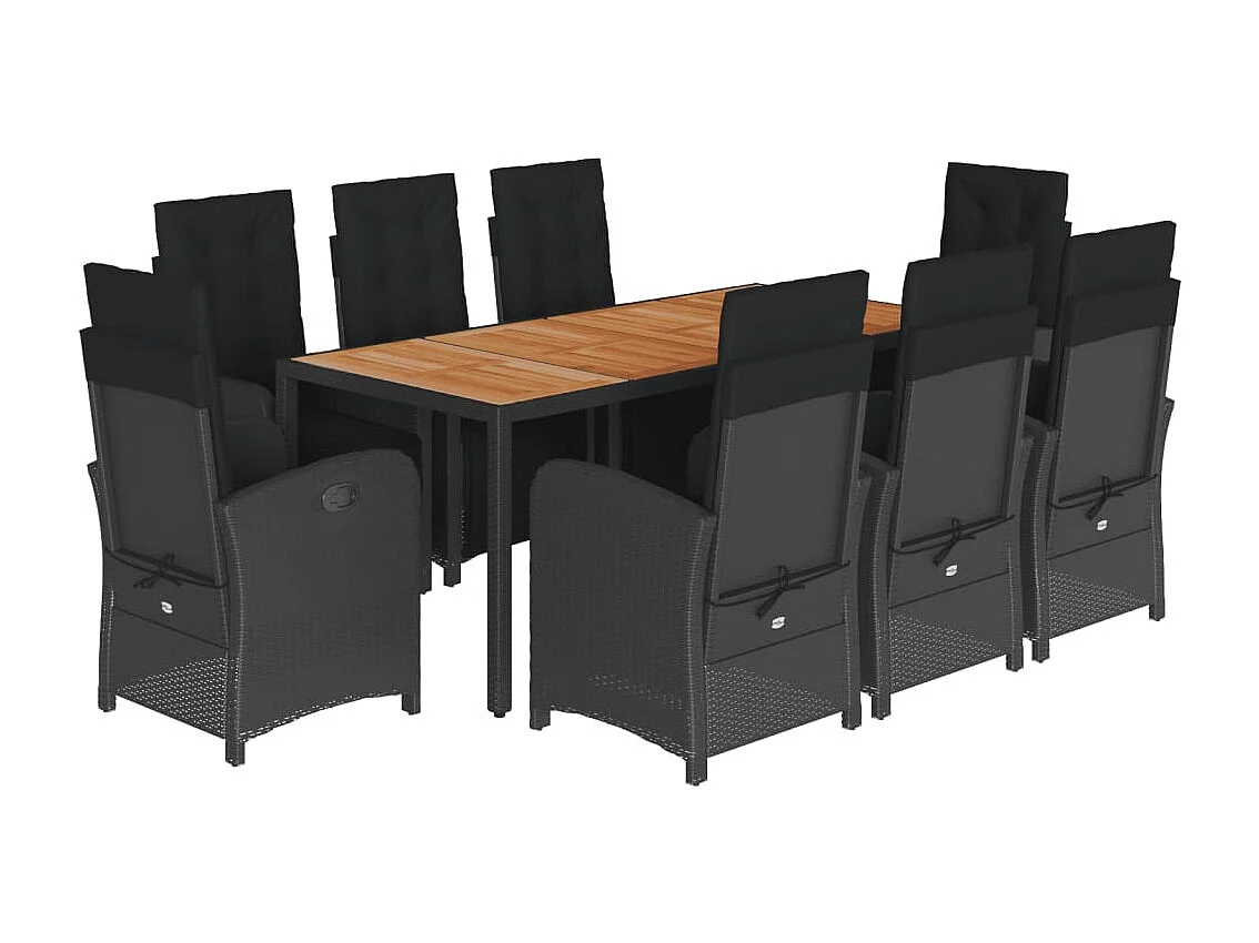 Ensemble à manger de jardin 9 pièces coussins noir résine tressée