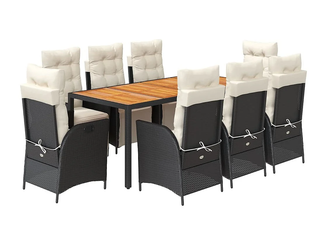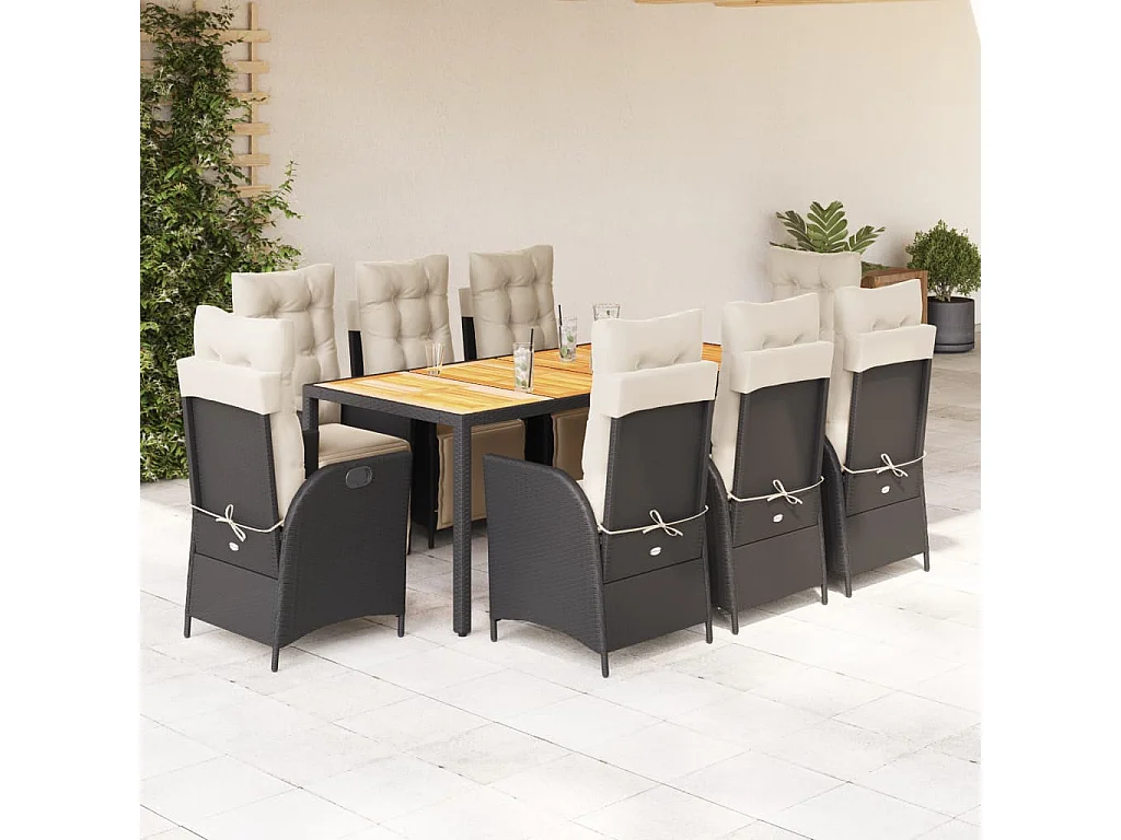 Ensemble à manger de jardin 9 pièces coussins noir résine tressée