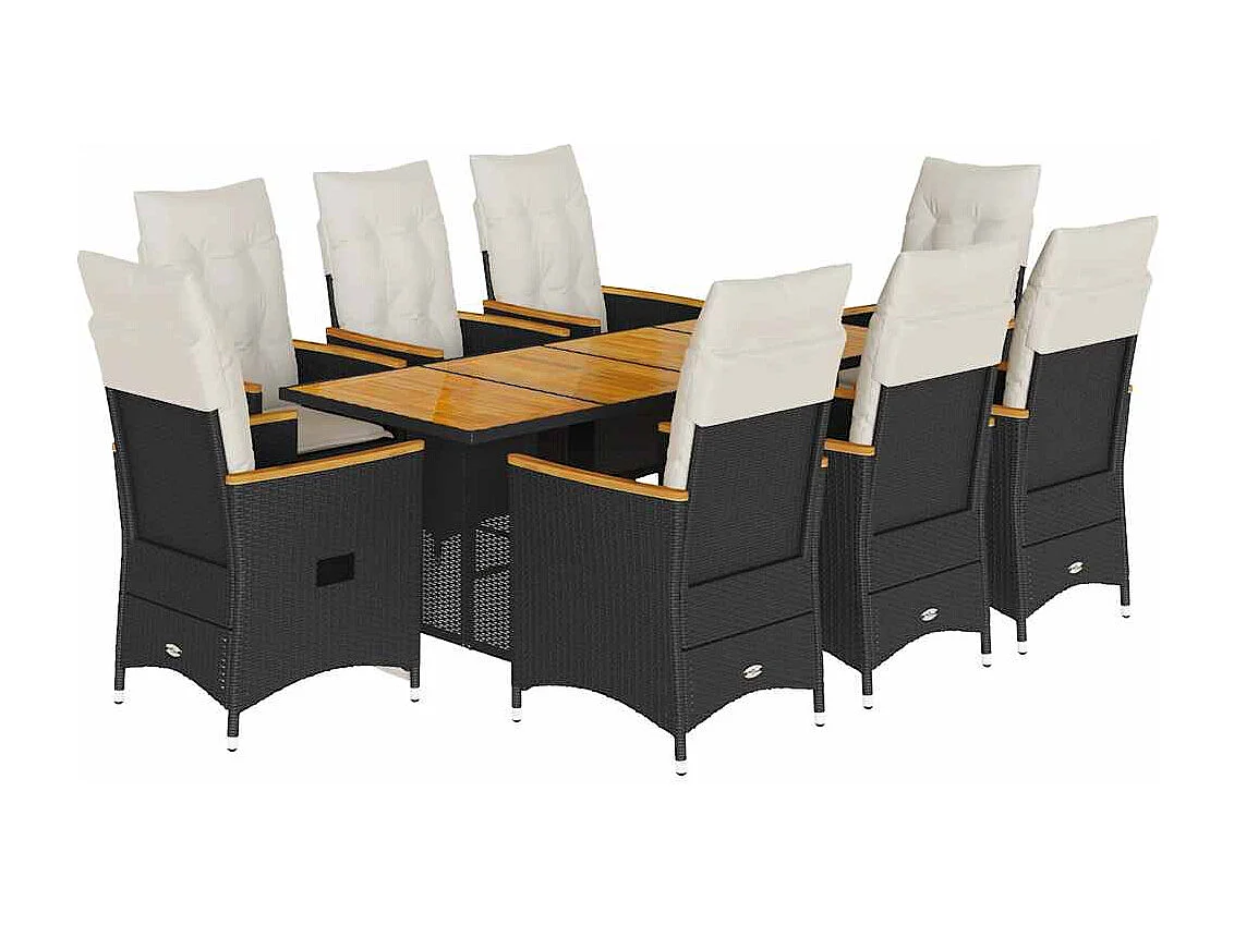 Ensemble à manger de jardin 9 pièces coussins noir résine tressée