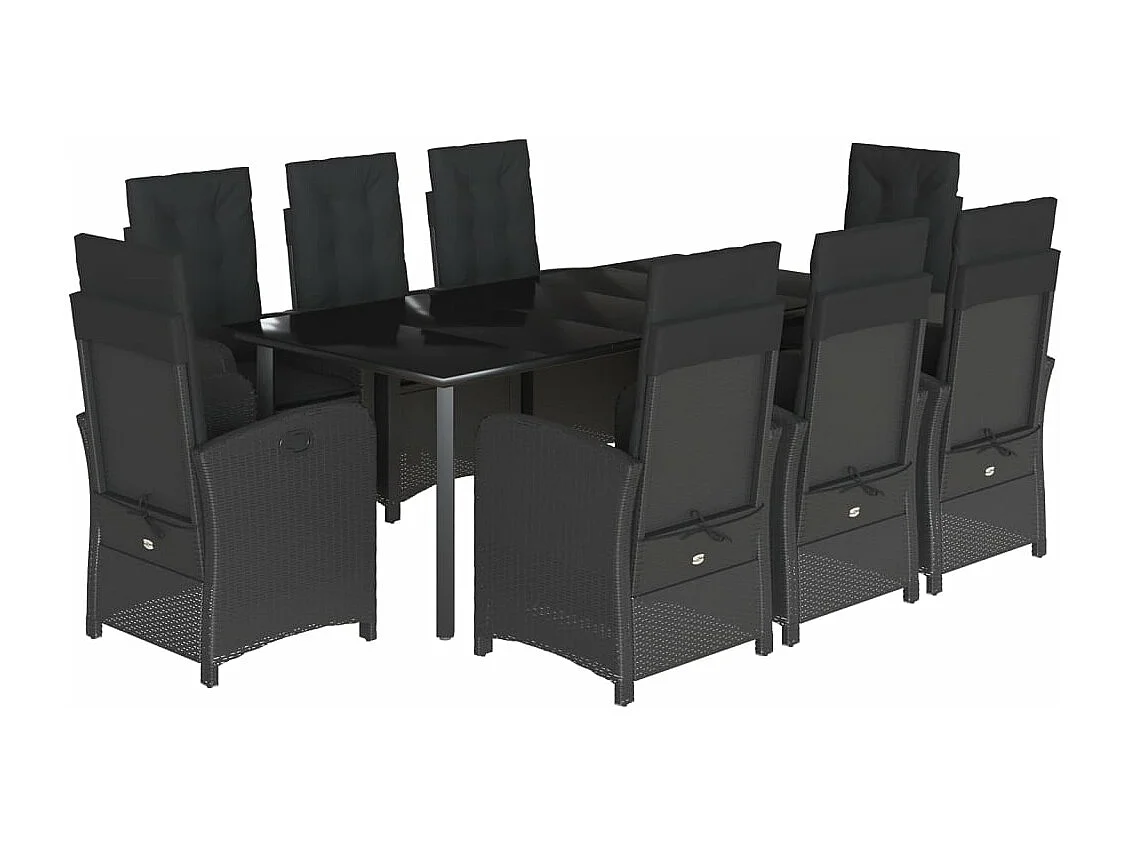 Ensemble à manger de jardin 9pcs coussins noir résine tressée