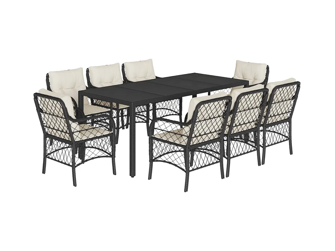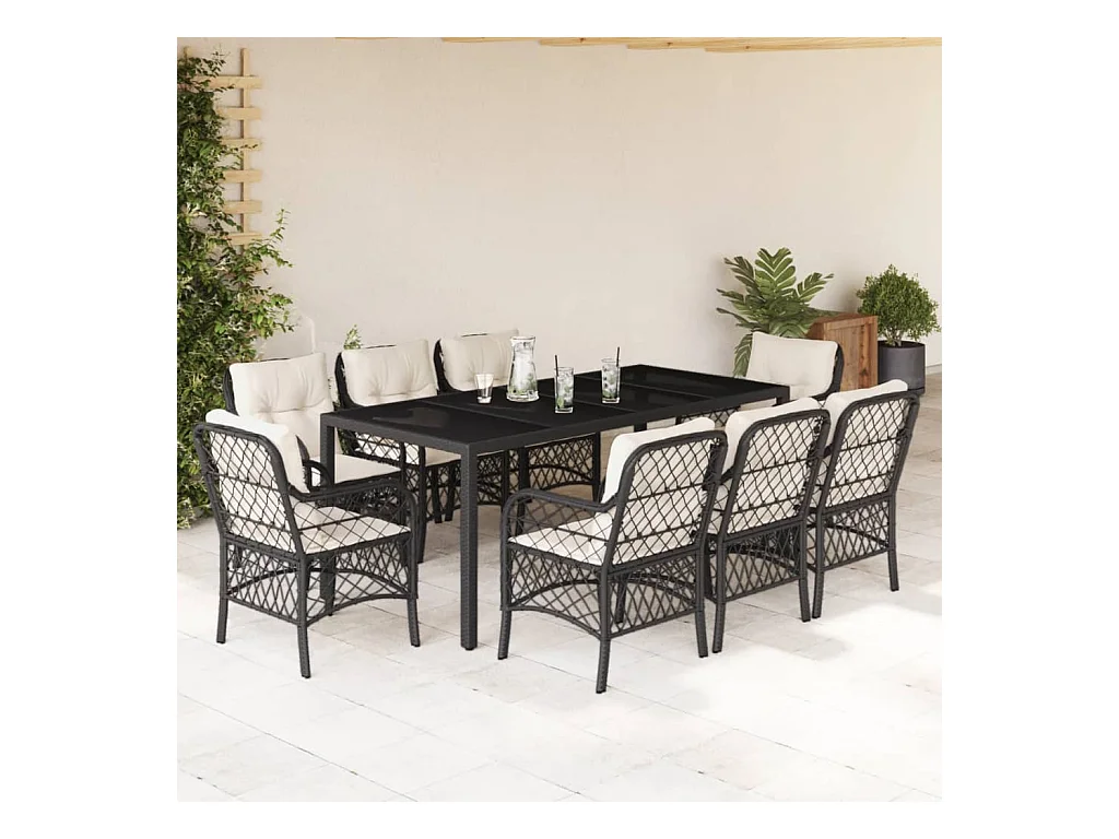 Ensemble à manger de jardin 9pcs coussins noir résine tressée