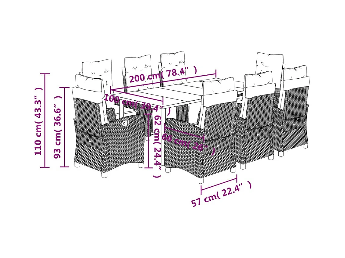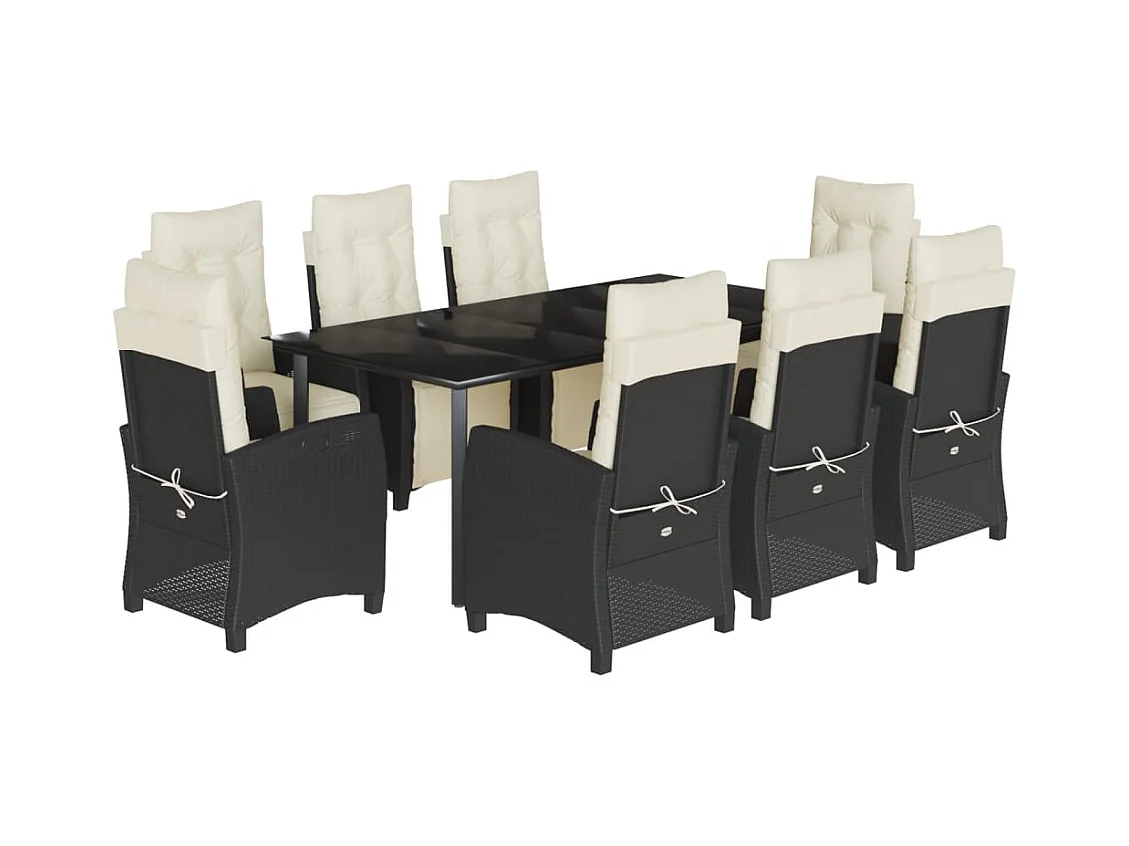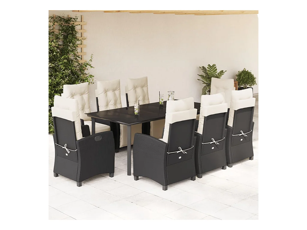 Ensemble à manger de jardin 9pcs coussins noir résine tressée